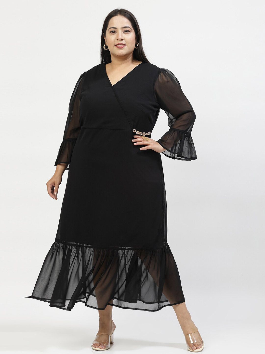 Plus Size Round Neck Long Puff Sleeves Floral Print Maxi Dress