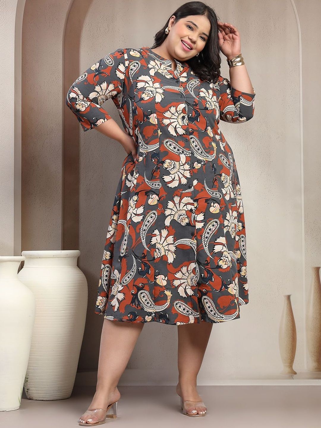 Plus Size 3/4 Sleeves Floral Print Maxi Dress