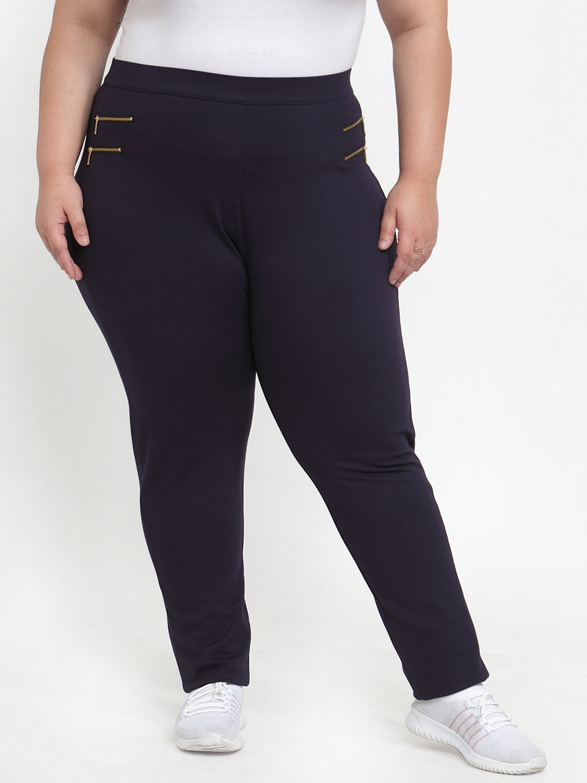 plusS Women Navy Blue Solid Slim-Fit Treggings