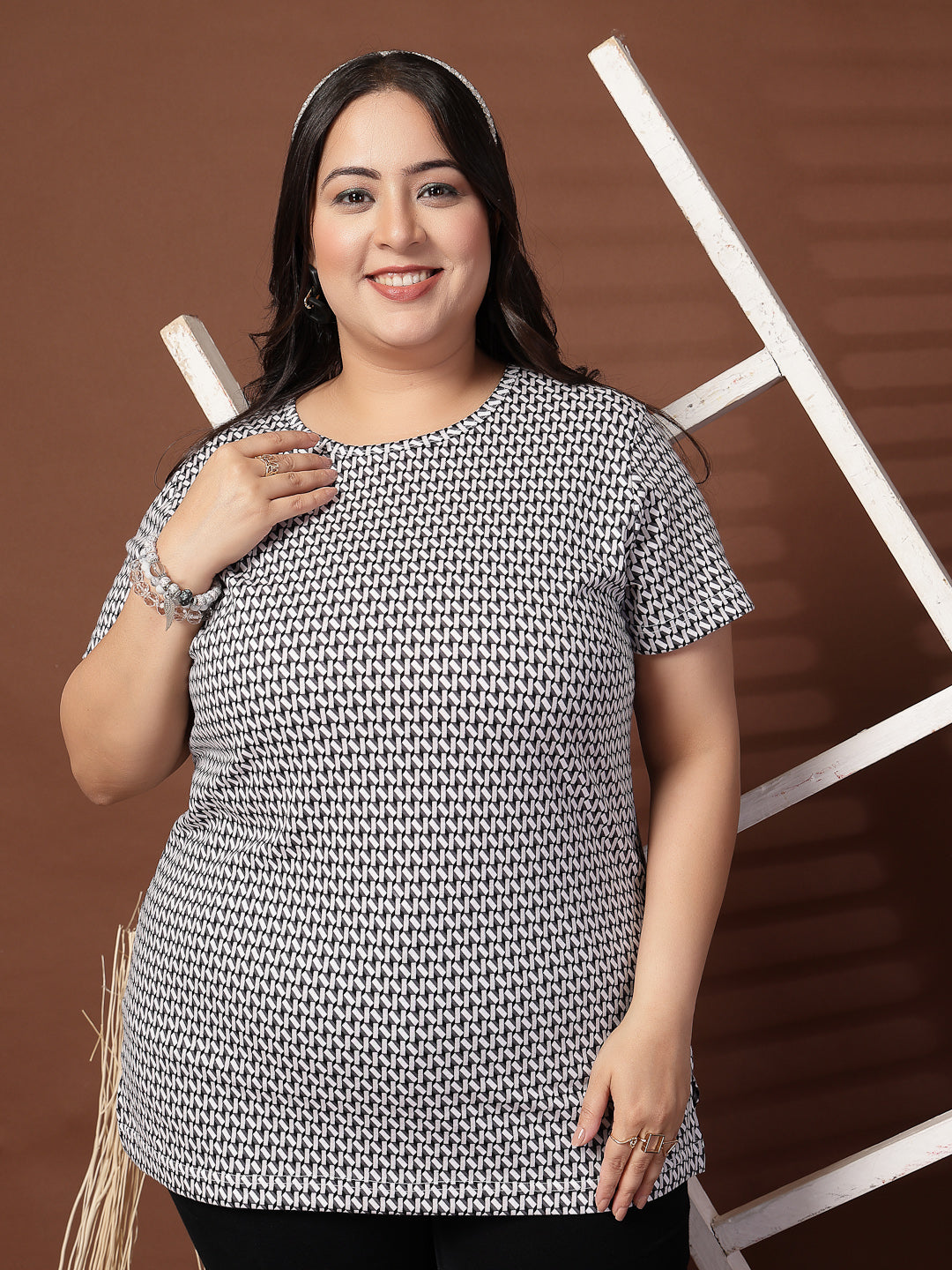 Grey Tshirt for women Other printed Regular length Round neck Short, cap sleeves Knitted cotton...