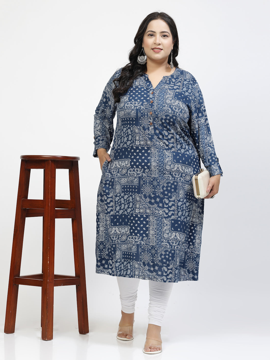 Plus Size Mandarin Collar Abstract Printed Kurta