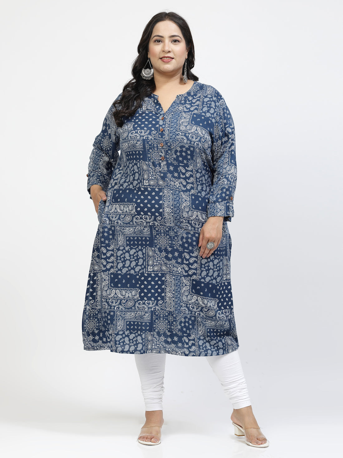 Plus Size Ethnic Motifs Printed Mandarin Collar A-Line Regular Kurta