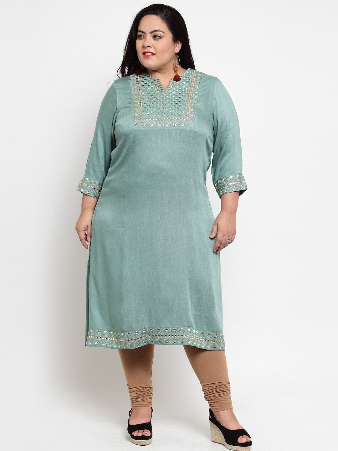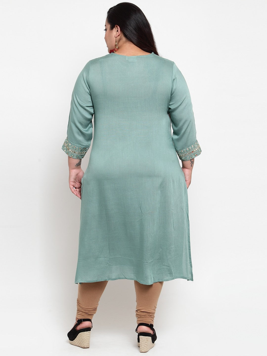 Plus Size Women Ethnic Motifs Embroidered Flared Sleeves Thread Work Kurta