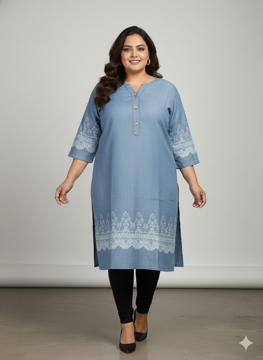 Plus Size Dk Blue Floral Printed Viscose Rayon kurta
