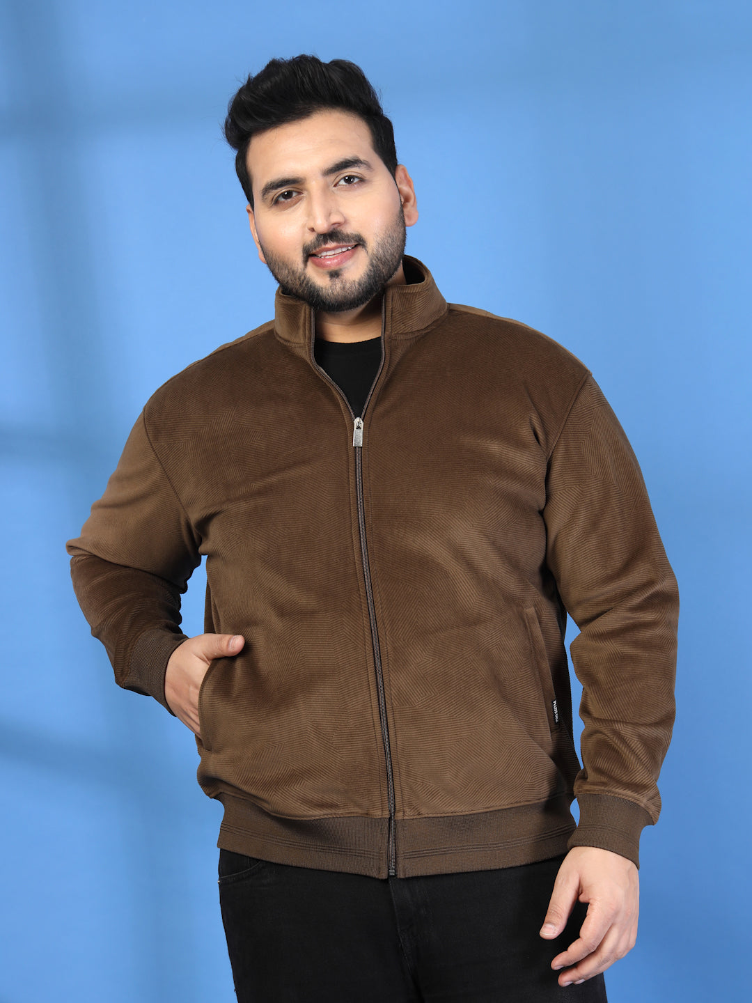 Brown solid bomber with zip detail, has a mandarin collar, pockets ,has a button closure,...