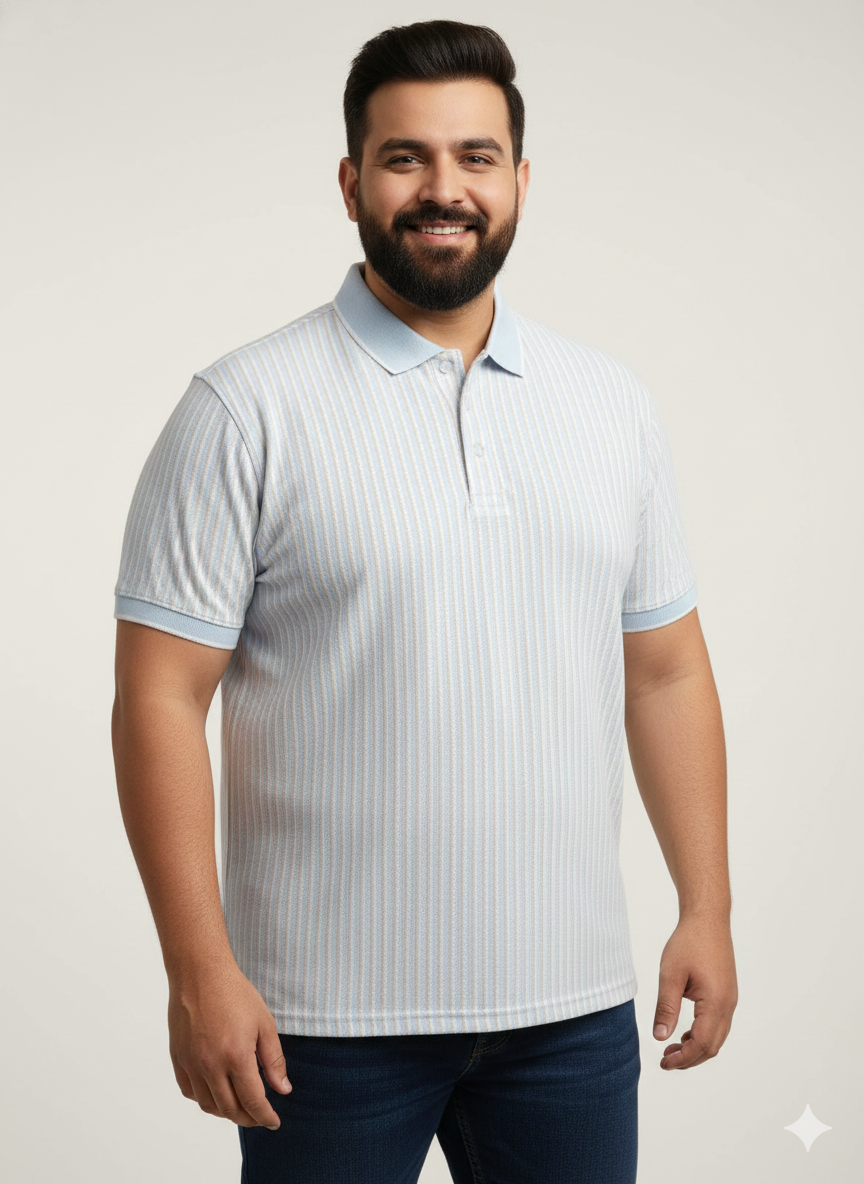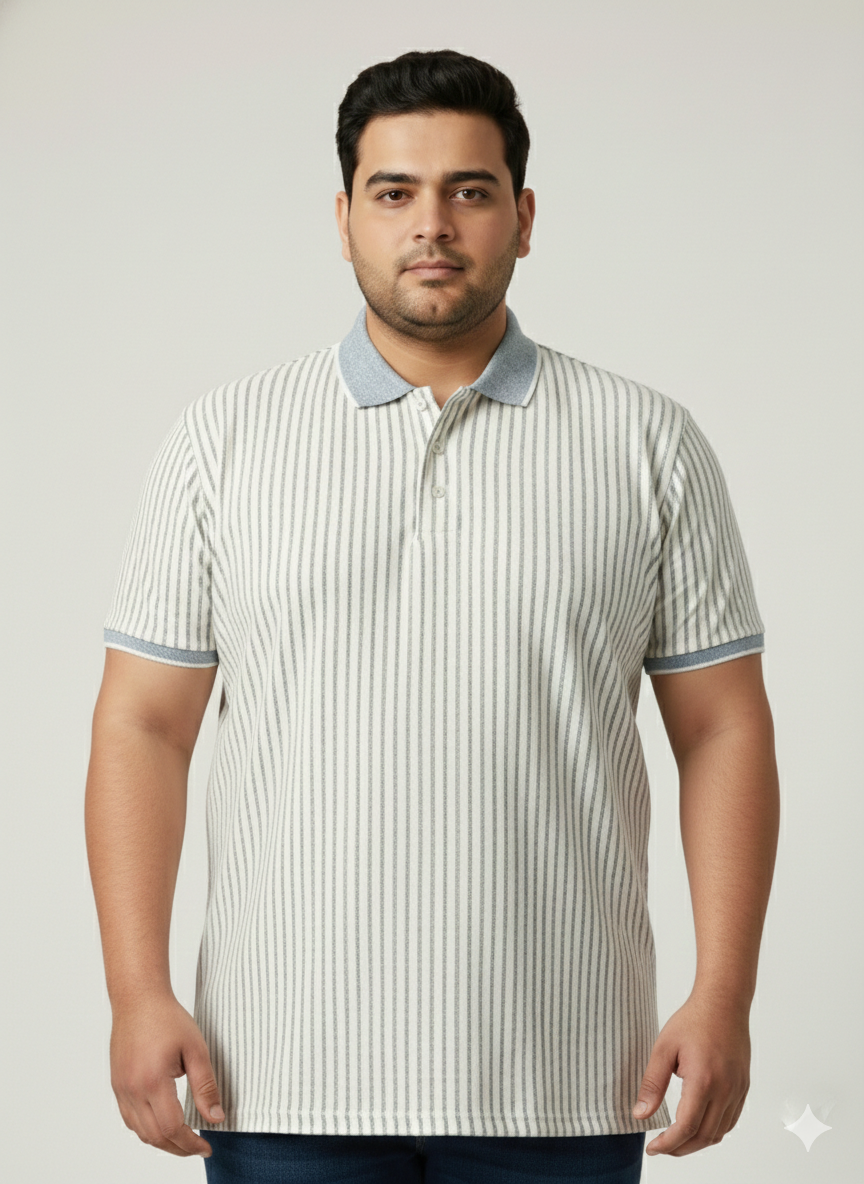 Plus Size Men Striped Polo Collar Cotton T-shirt