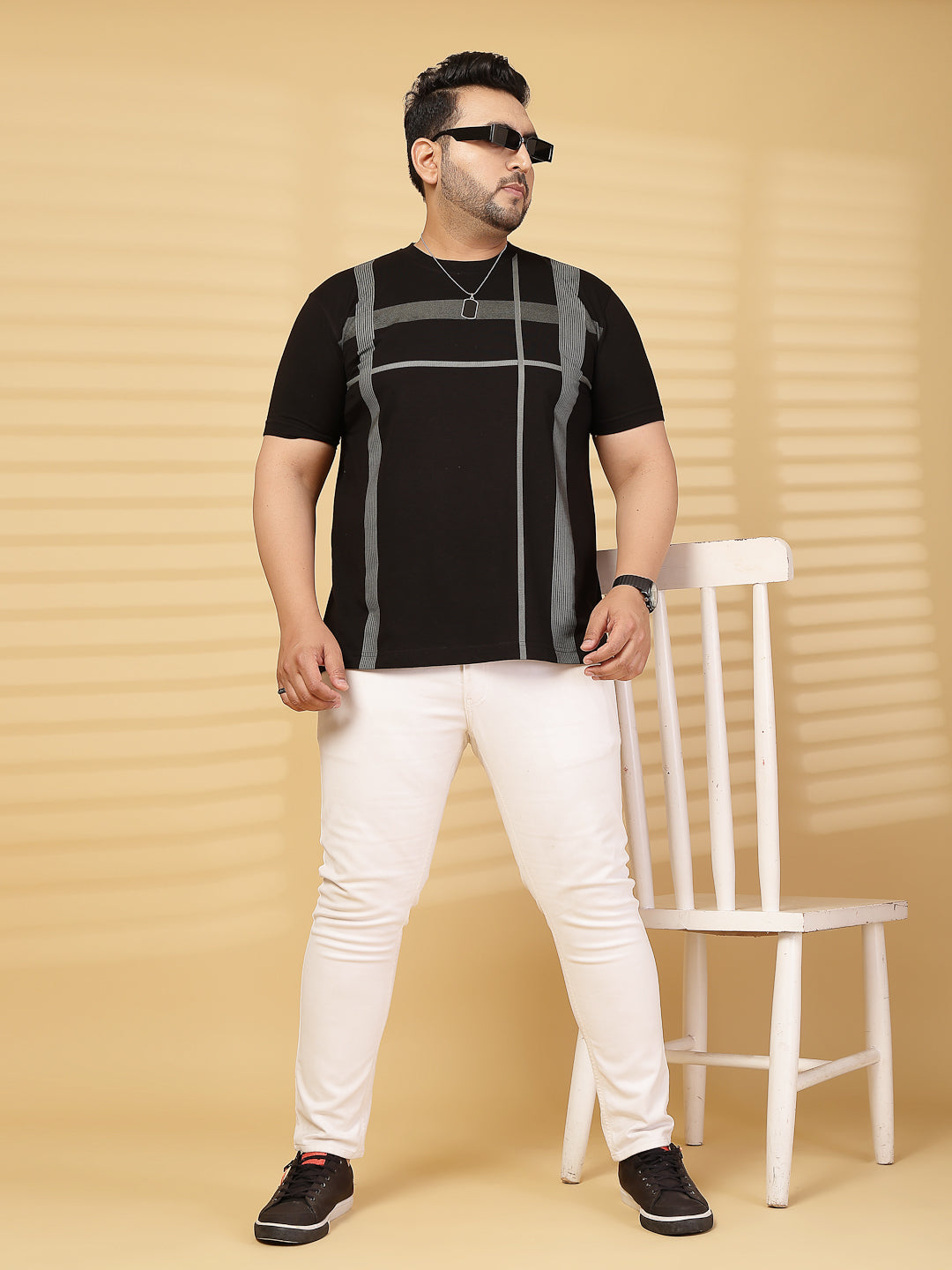 Plus Size Men Side Striped Mid-Rise Track Pants