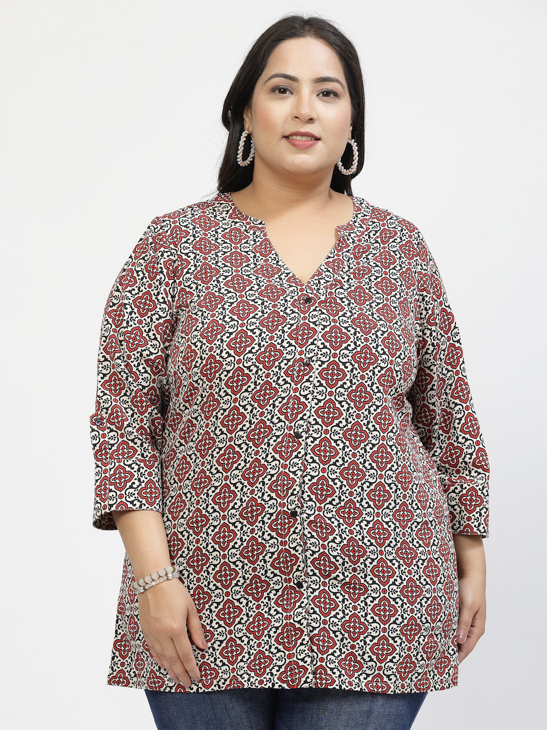 Plus Size Women Geometric Printed V-Neck Straight Top