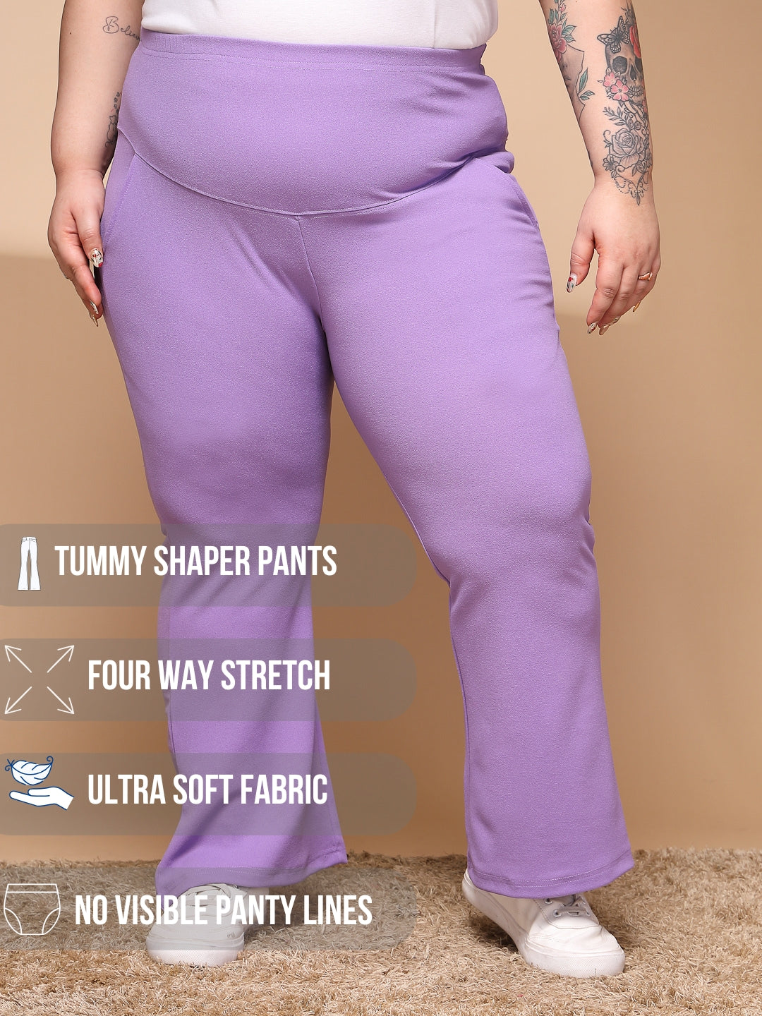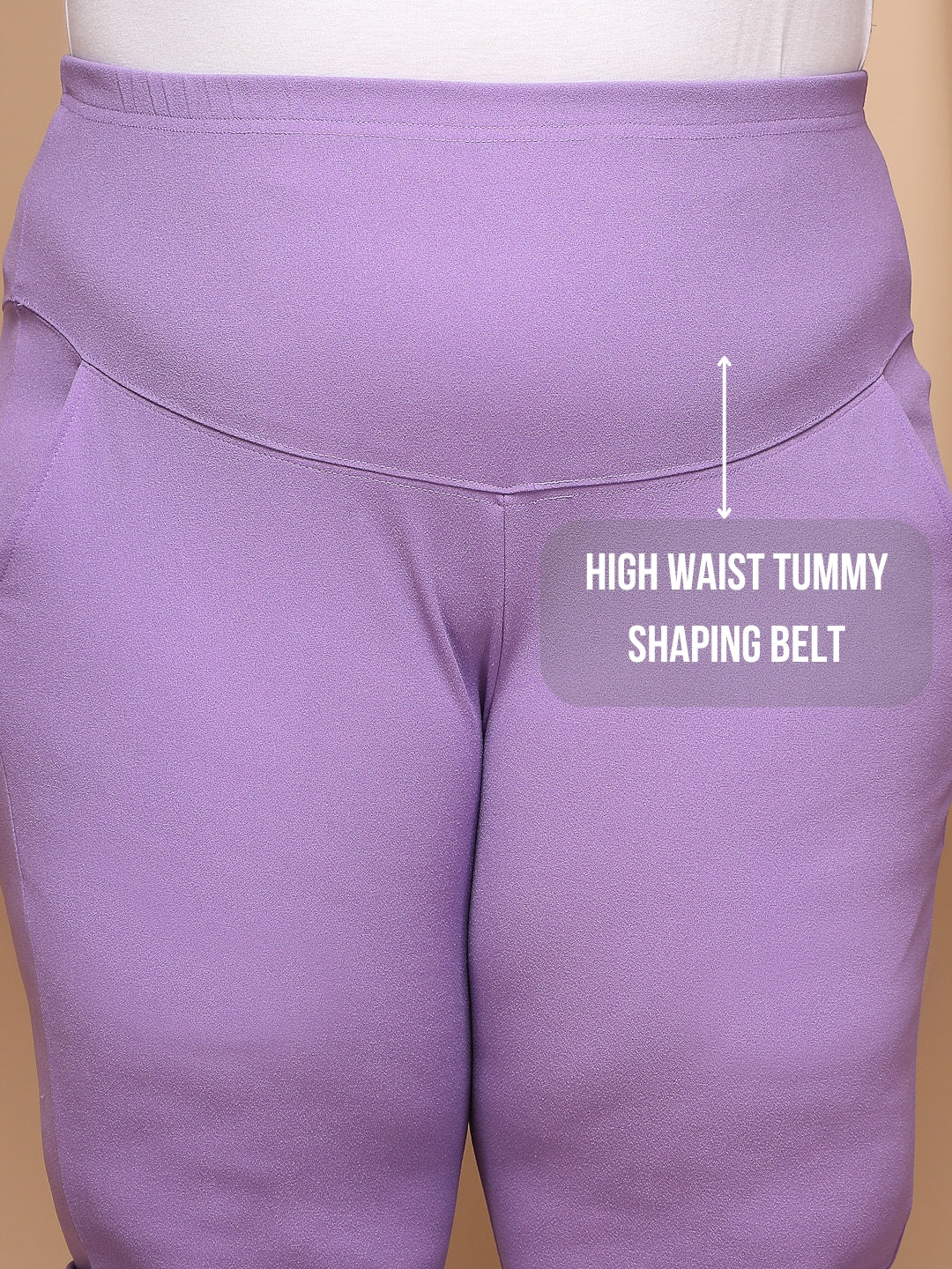 Plus Size Women Beige Regular Fit Cotton Solid Formal Trousers