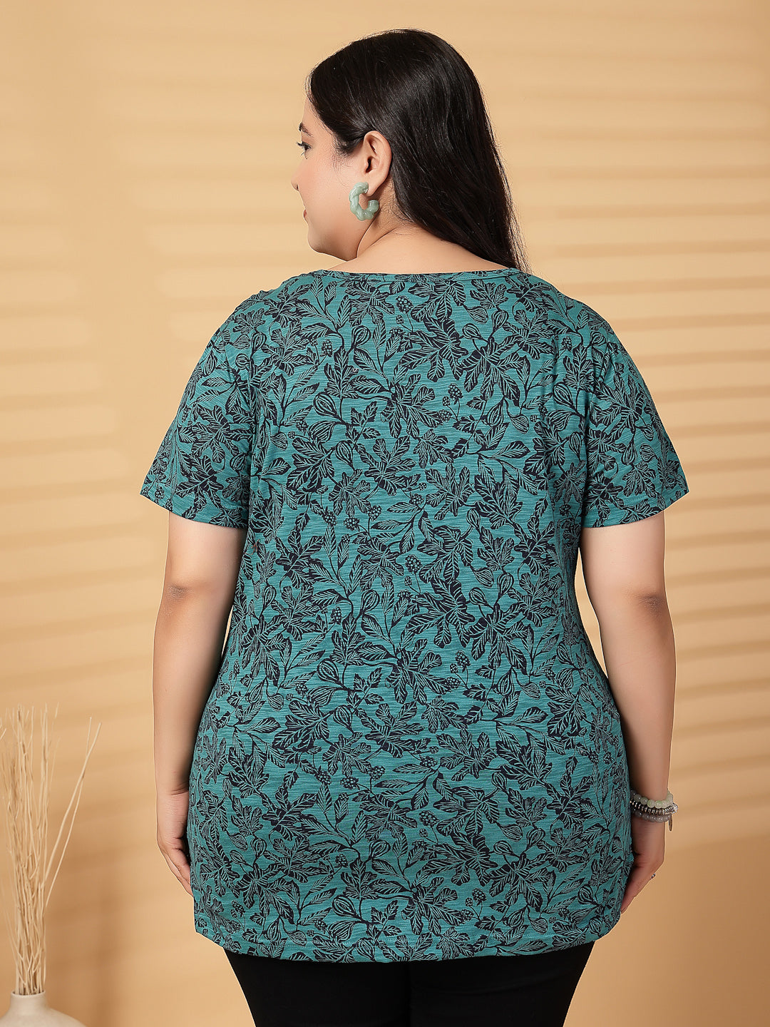 Plus Size Self Design Round Neck Three-Quarter Sleeves T-shirt