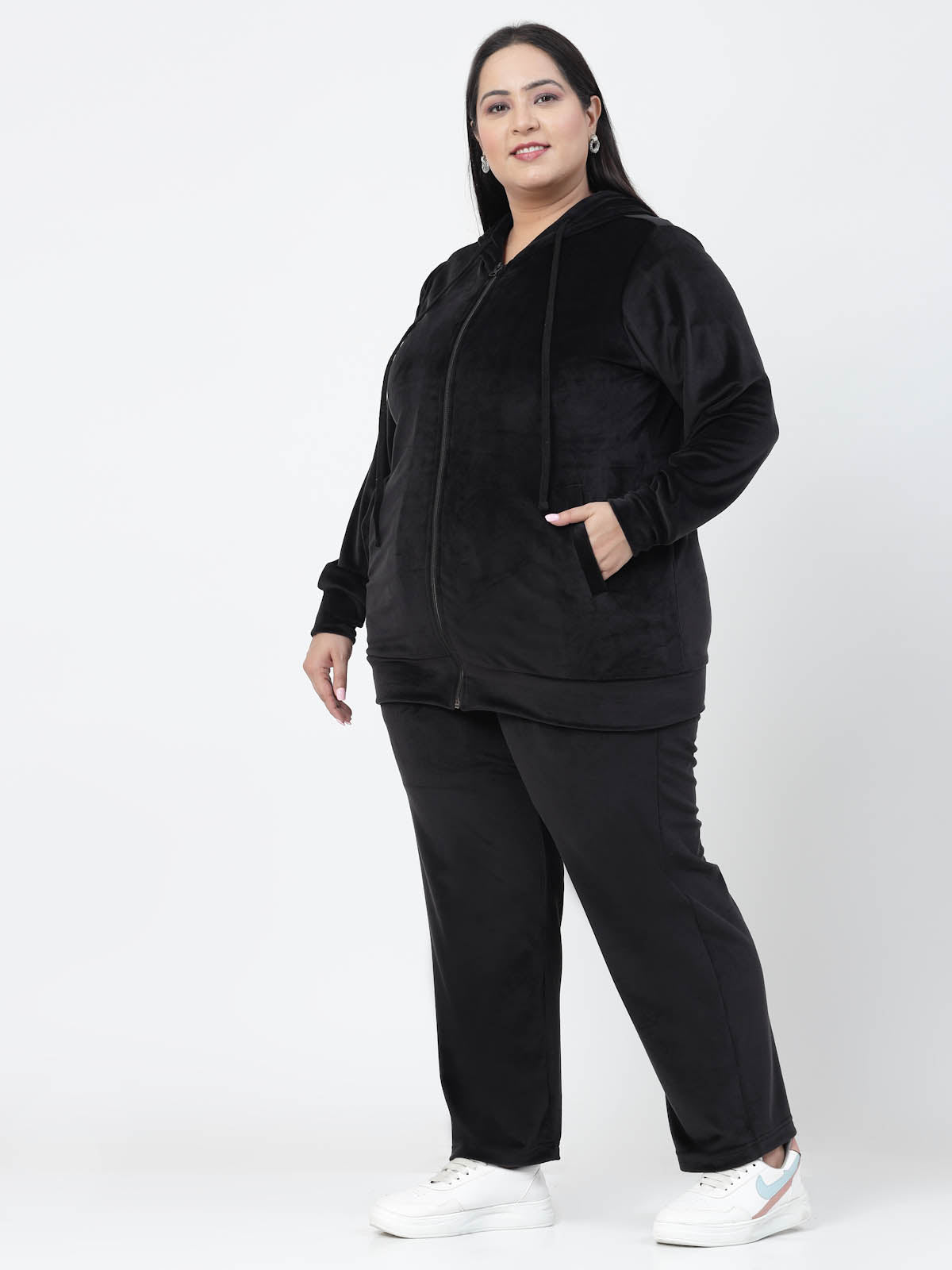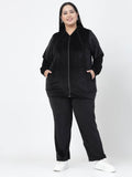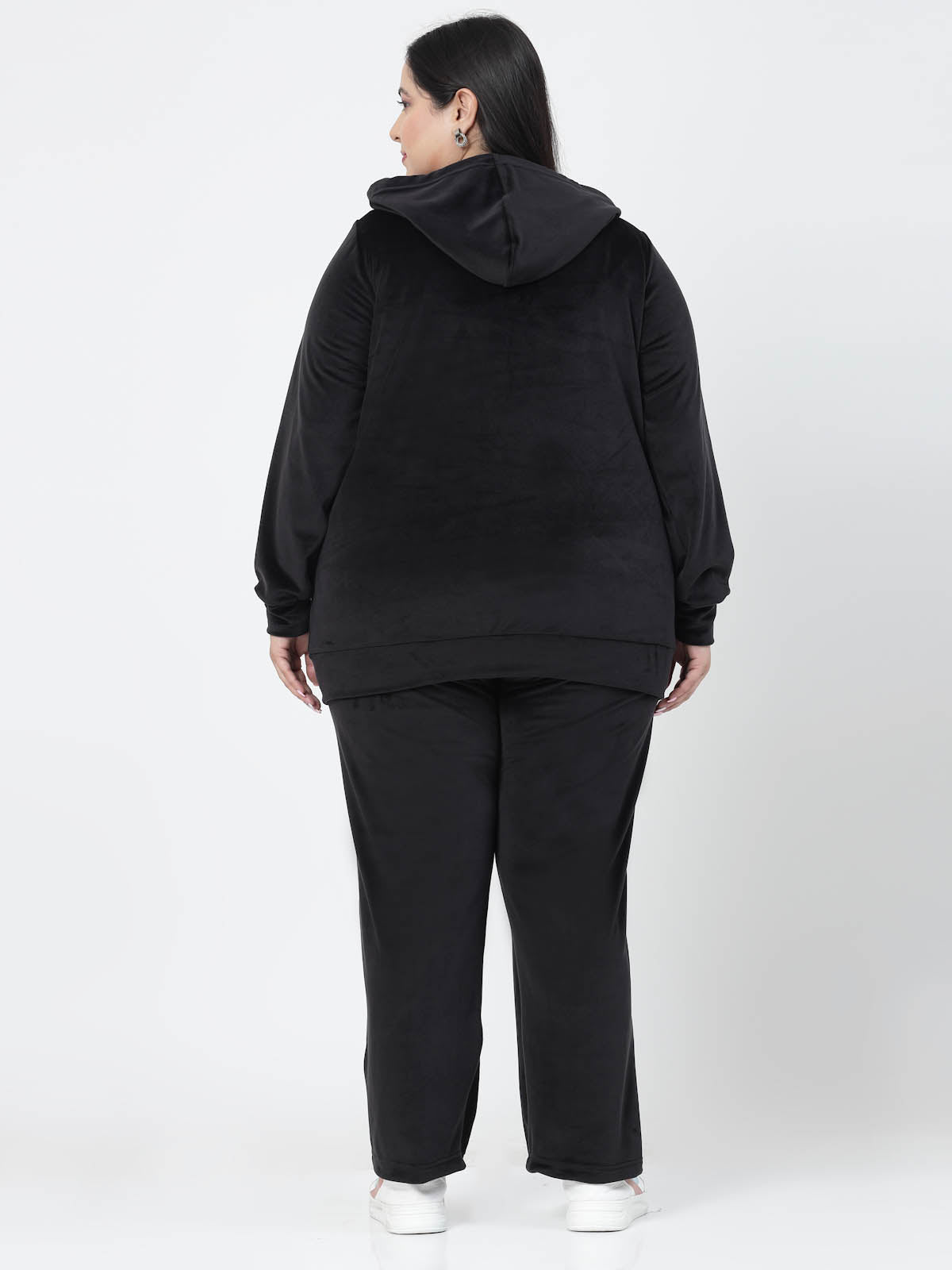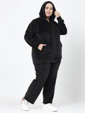 Plus Size Women Hooded Neck Velour Tracksuit
