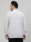 Mandarin Collar Roll Up Sleeves Pure Cotton Casual Shirt