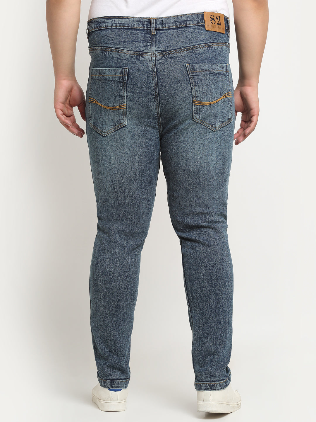 Plus Size Men Blue Comfort Highly Distressed Light Fade Non Stretchable Jeans
