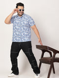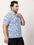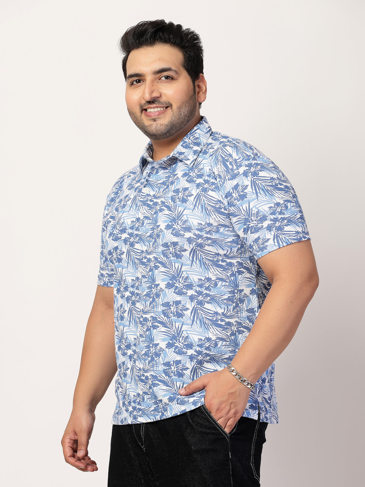 Plus Size Men Floral Printed Polo Collar Cotton T-shirt