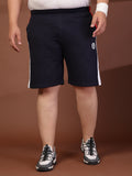 Plus Size Men Navy Typography Printed Mid-Rise Regular Shorts