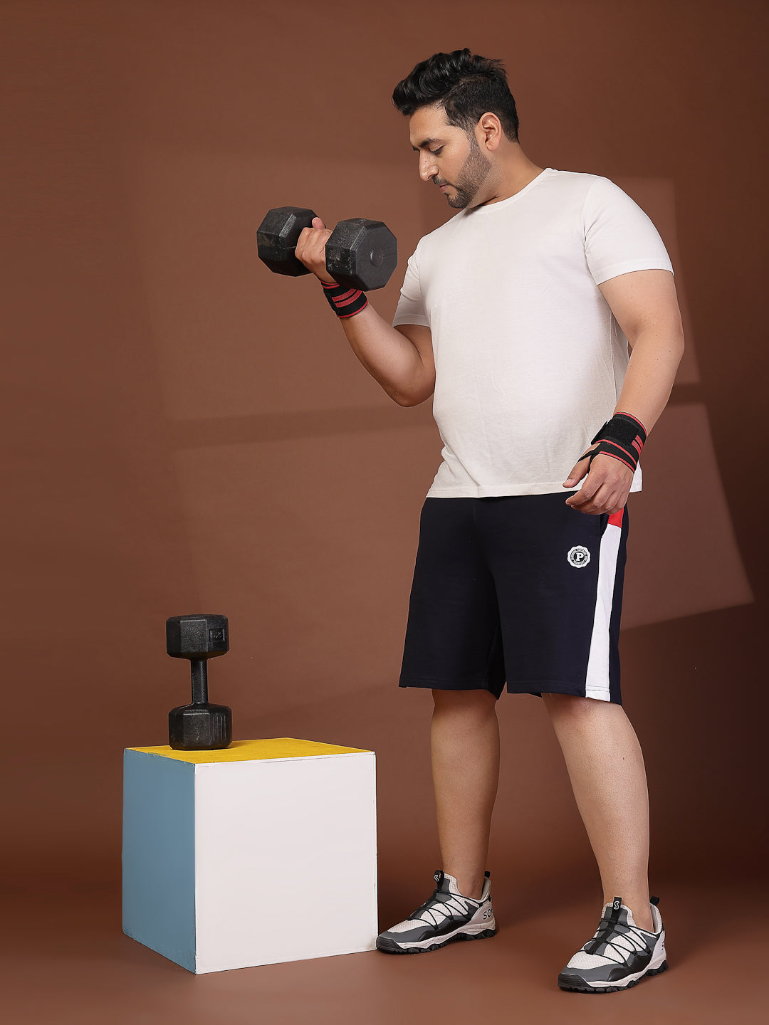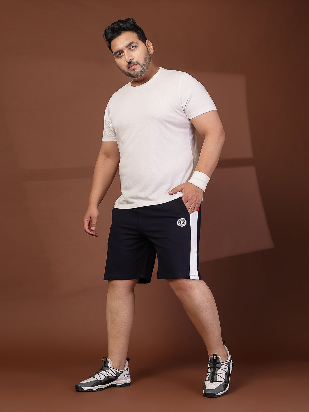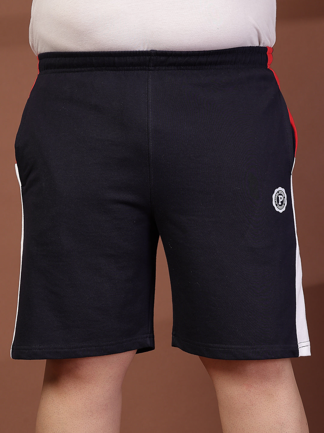 Men Navy Typography Printed Mid-Rise Regular Plus Size Shorts