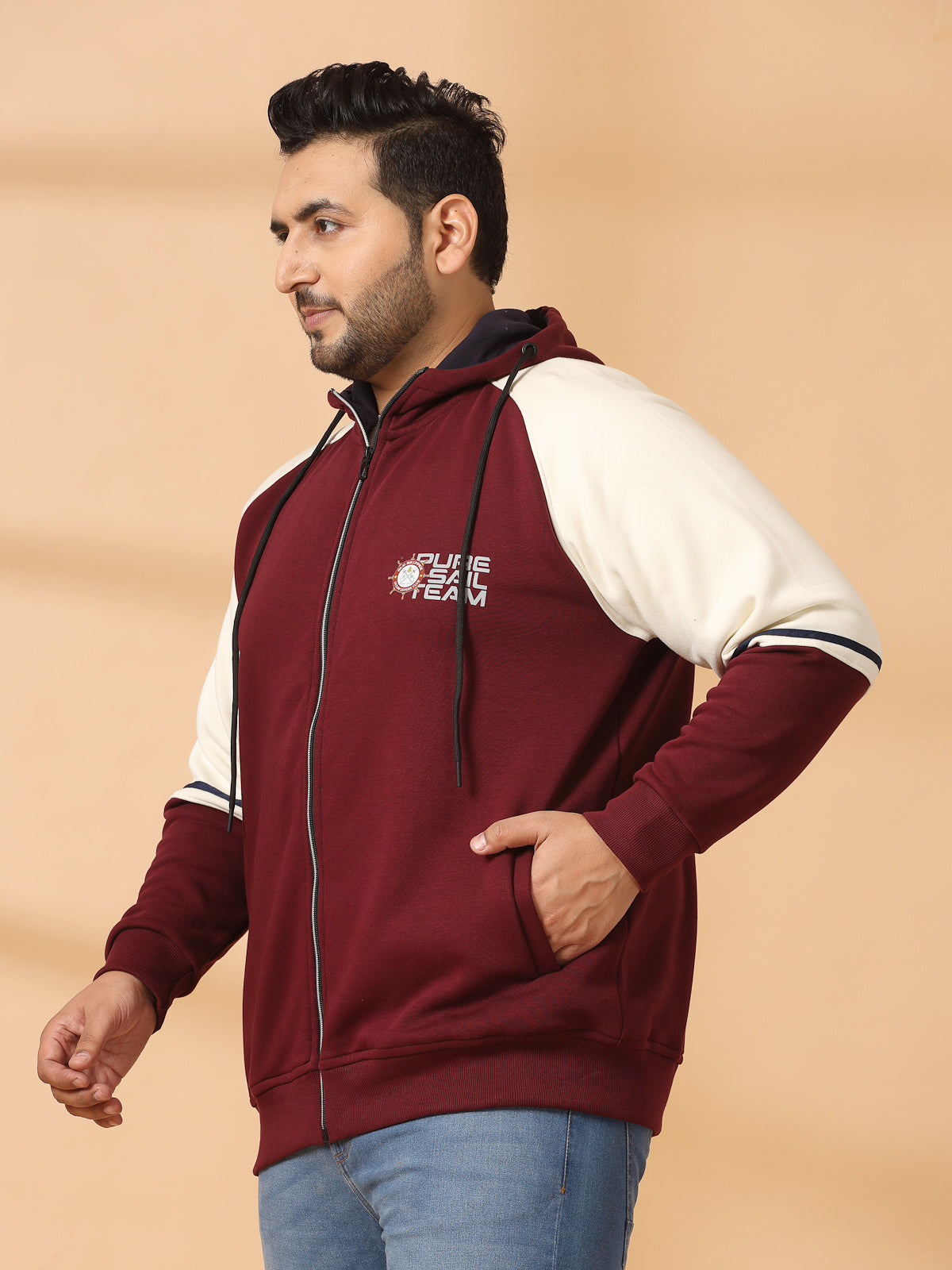 Plus Size Men Solid High Neck Cotton Front-Open Sweatshirt