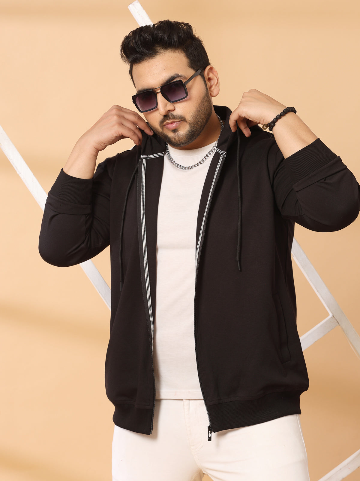 Plus Size Men Solid High Neck Cotton Front-Open Sweatshirt