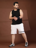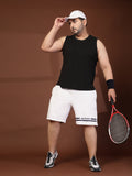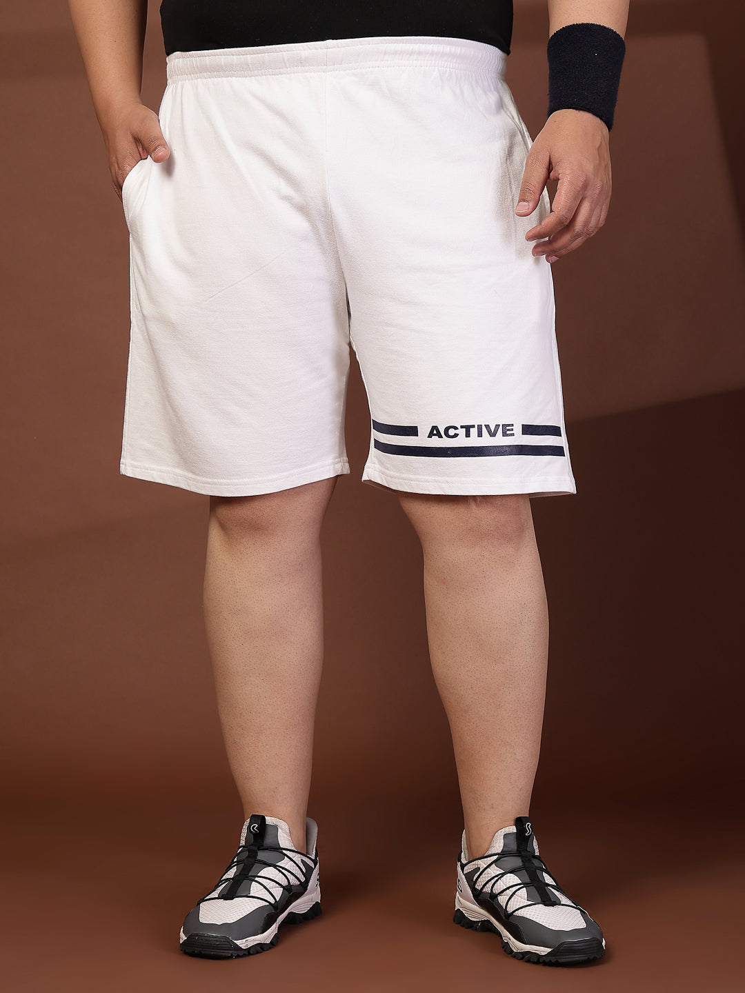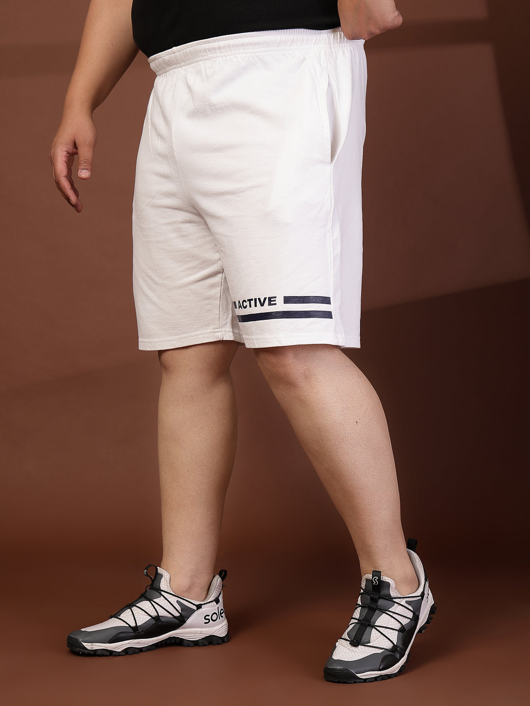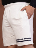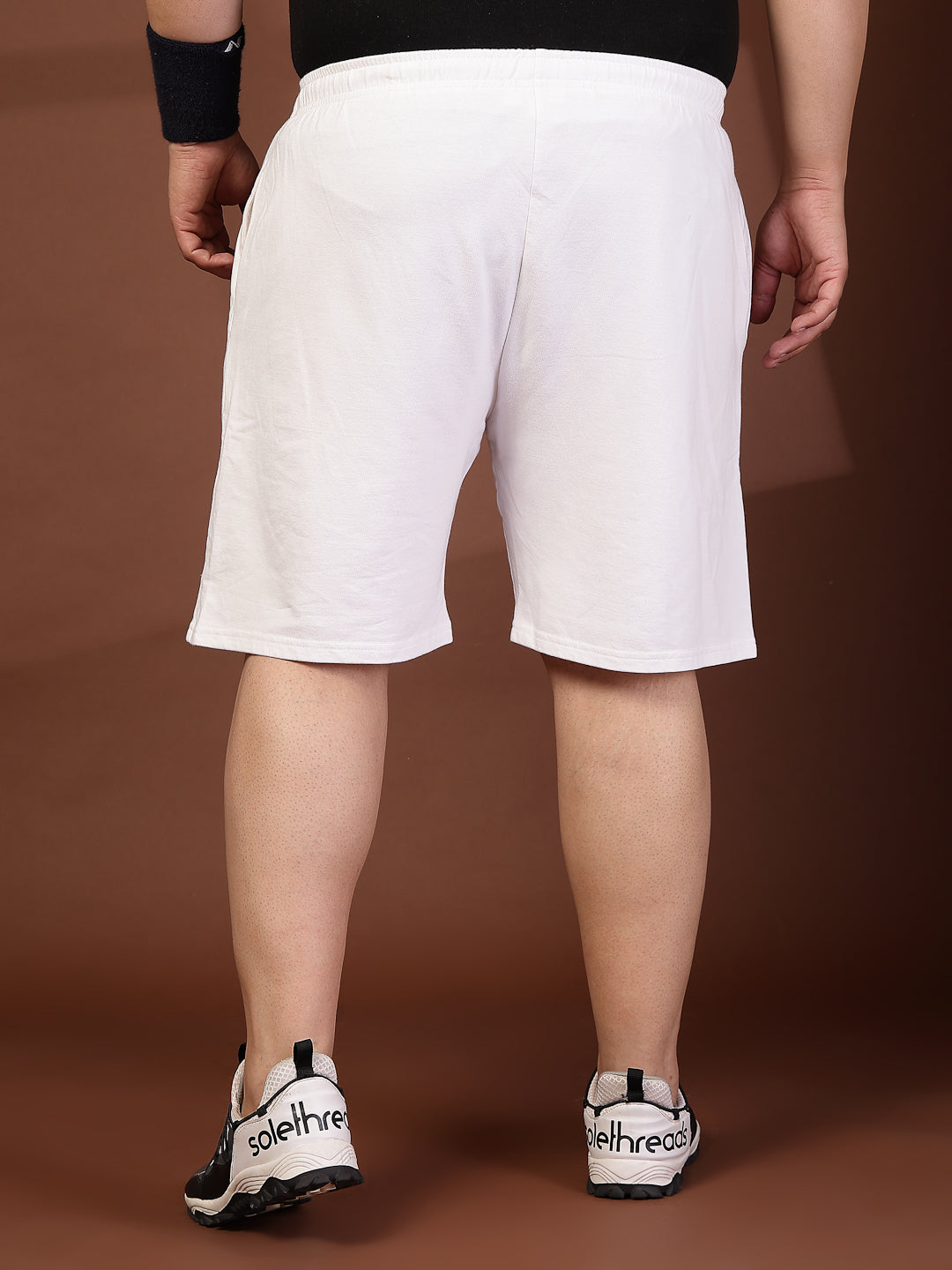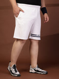 White solid mid-rise sports shorts, has 2 pockets, drawstring closure