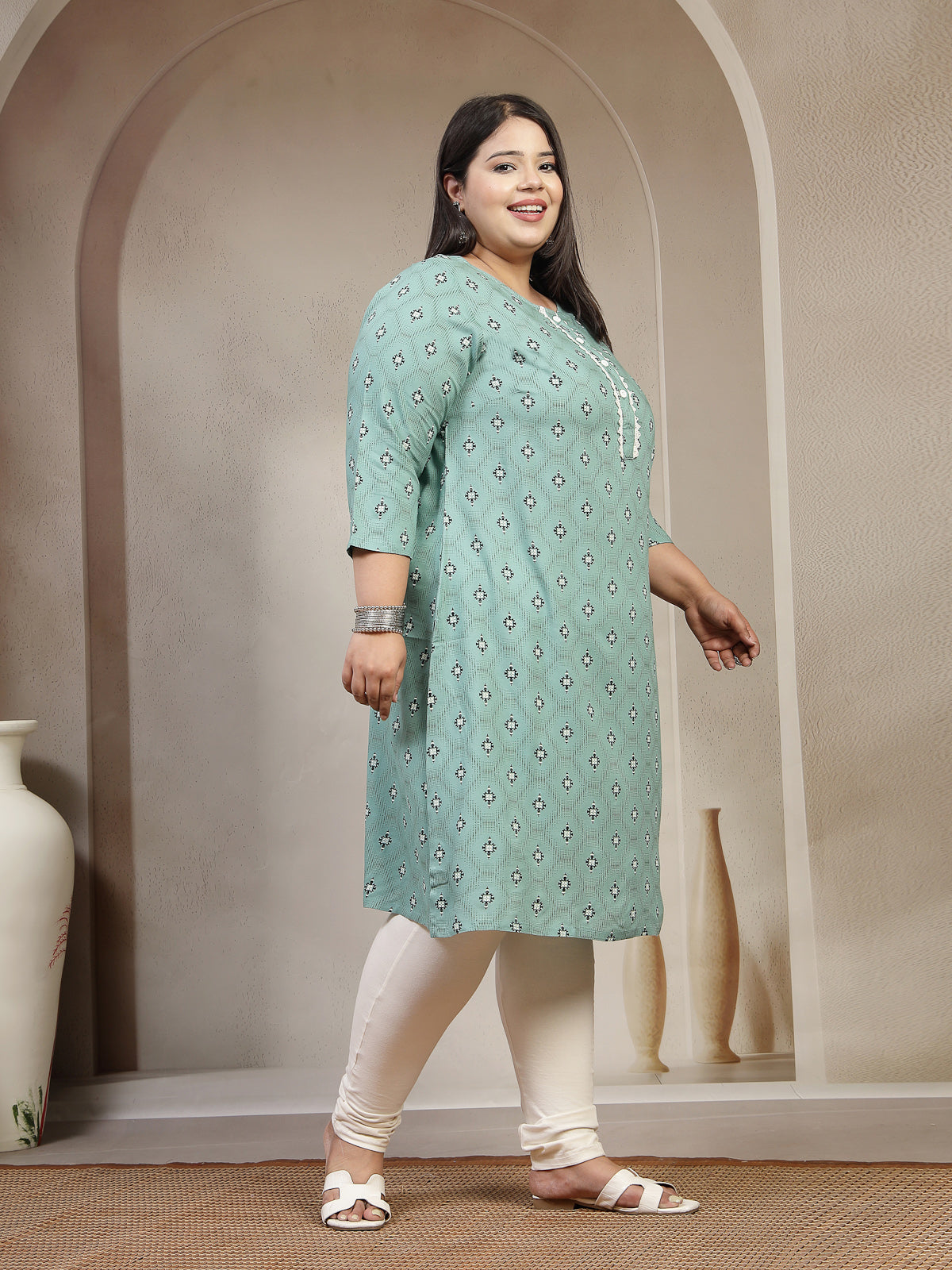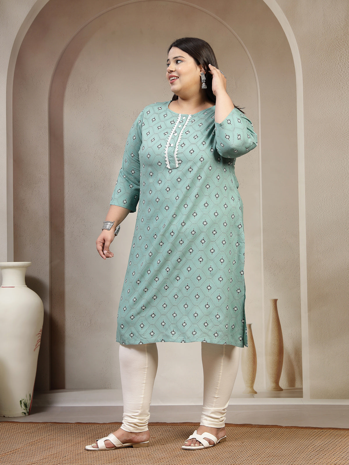 Plus Size Abstract Printed Thread Work Kurta