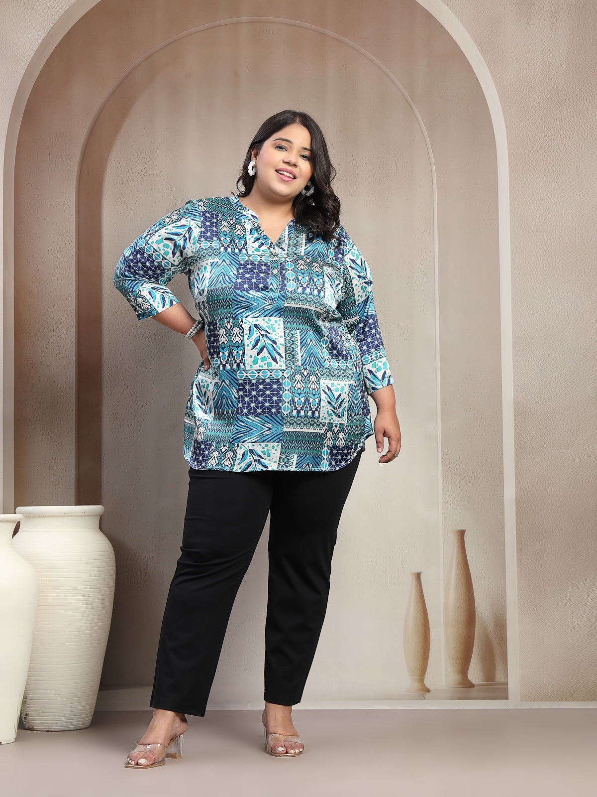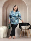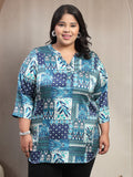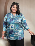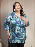 Plus Size Abstract Printed V-Neck Regular Top