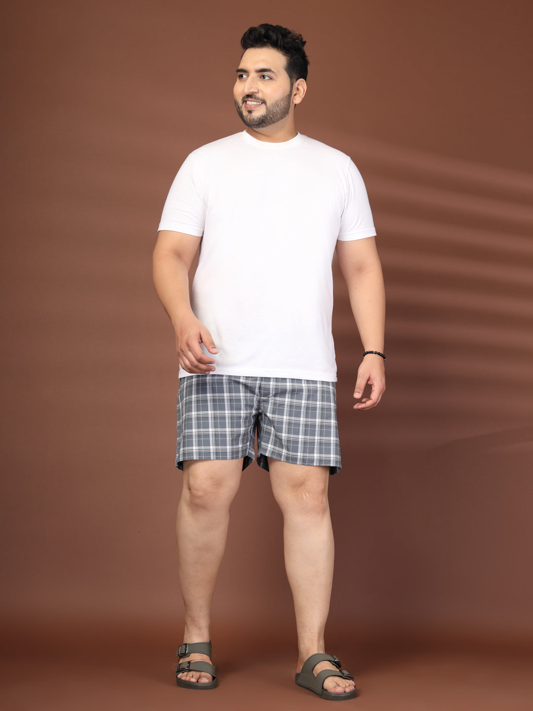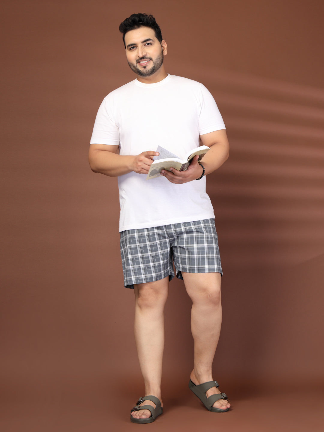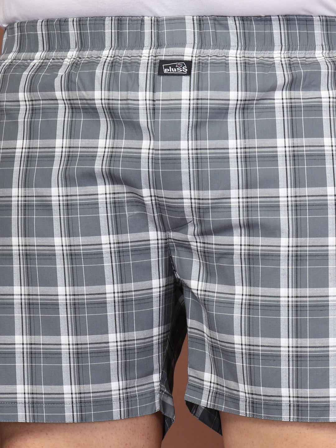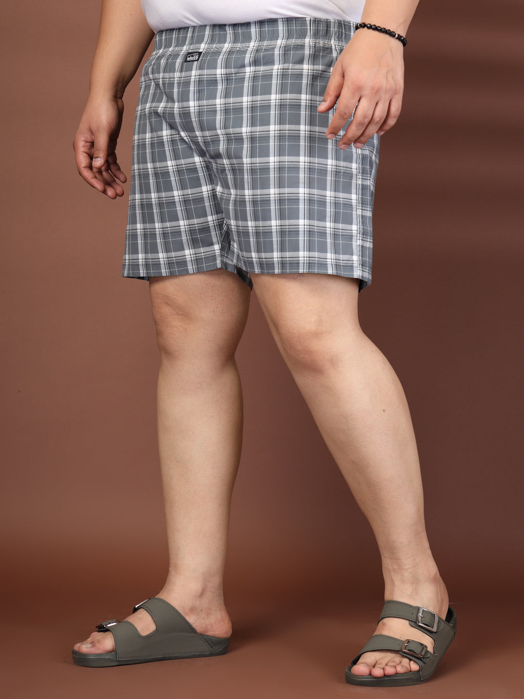 Grey checked mid-rise plus-size boxers, has inner elasticated waistband with slip-on closure and one pocket