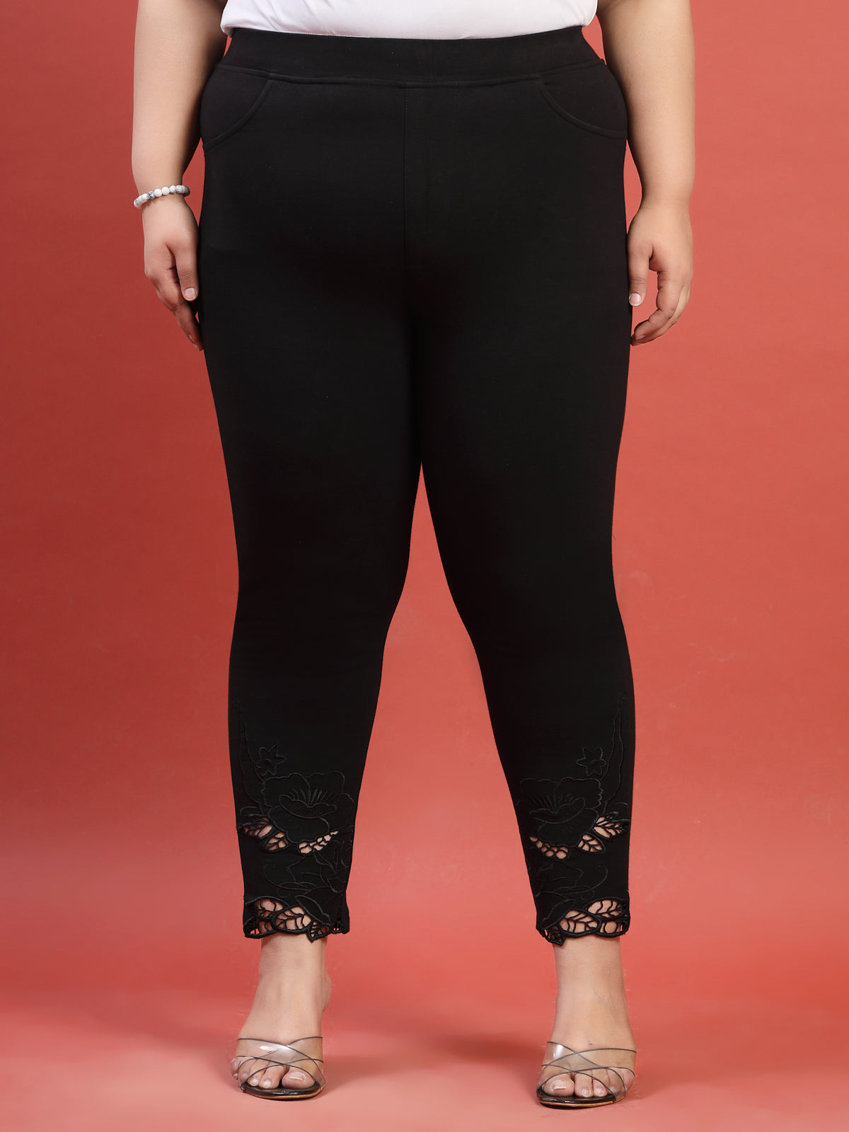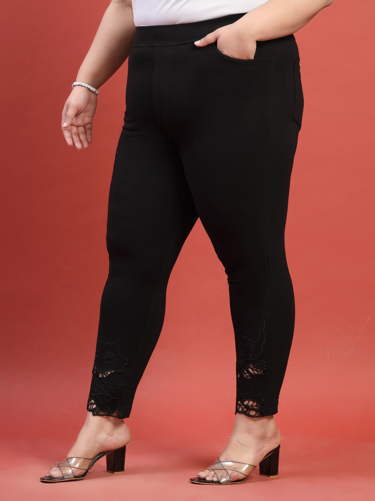 Plus Size Ladies Jegging With Skalping Embroidered