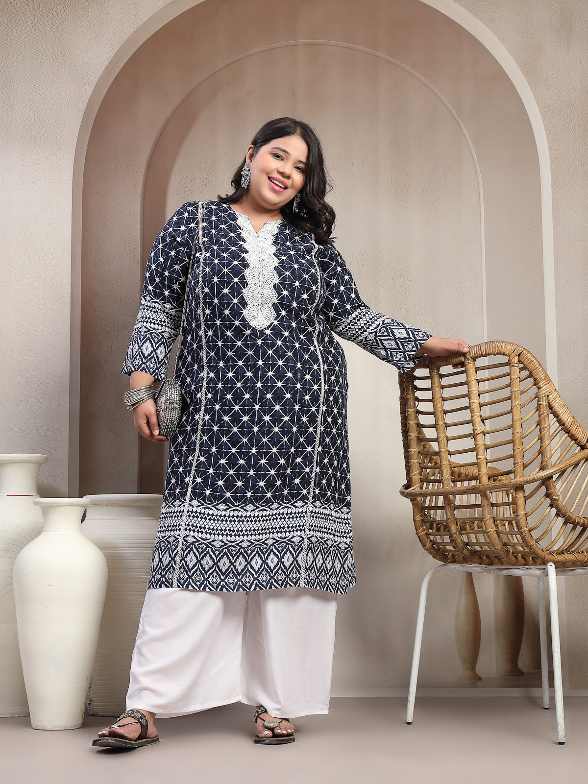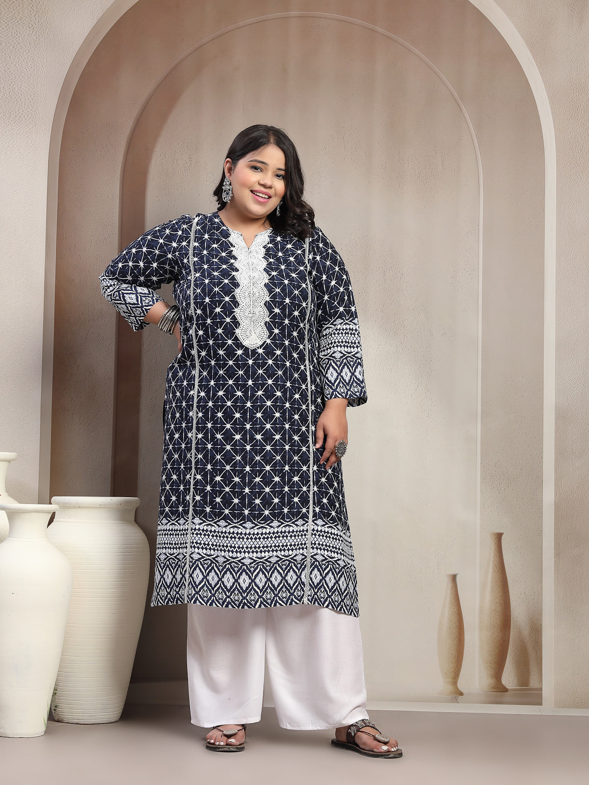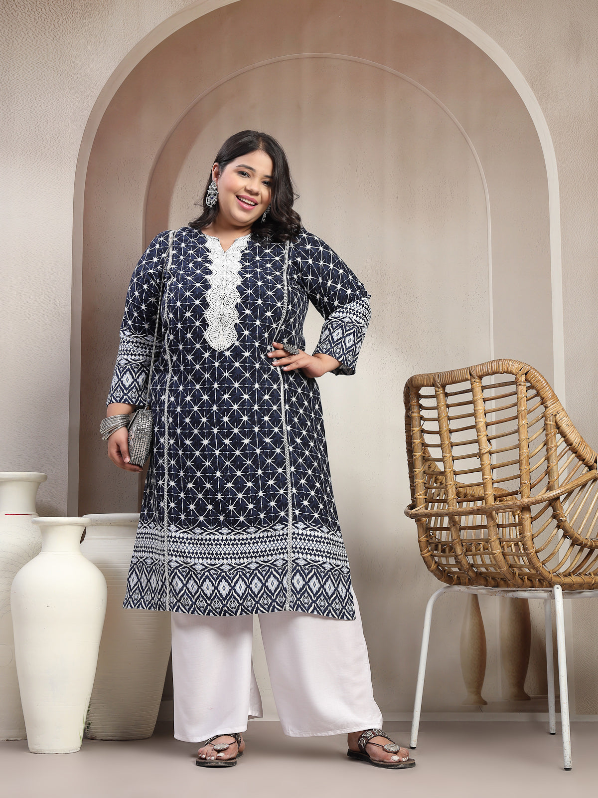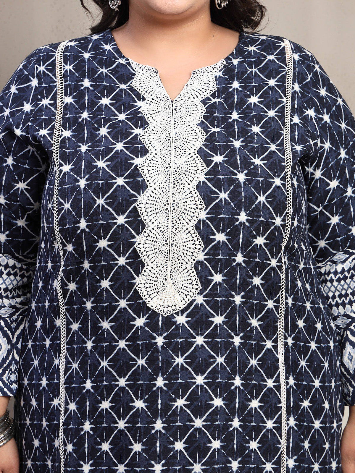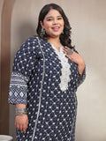 Plus Size Dk Blue Floral Printed Viscose Rayon kurta