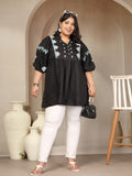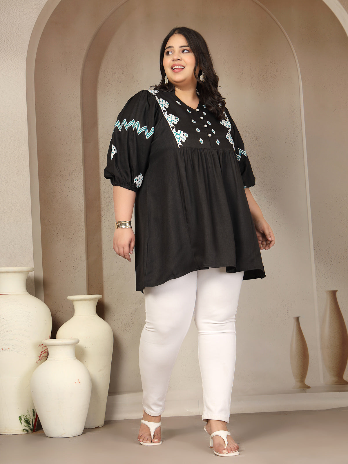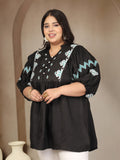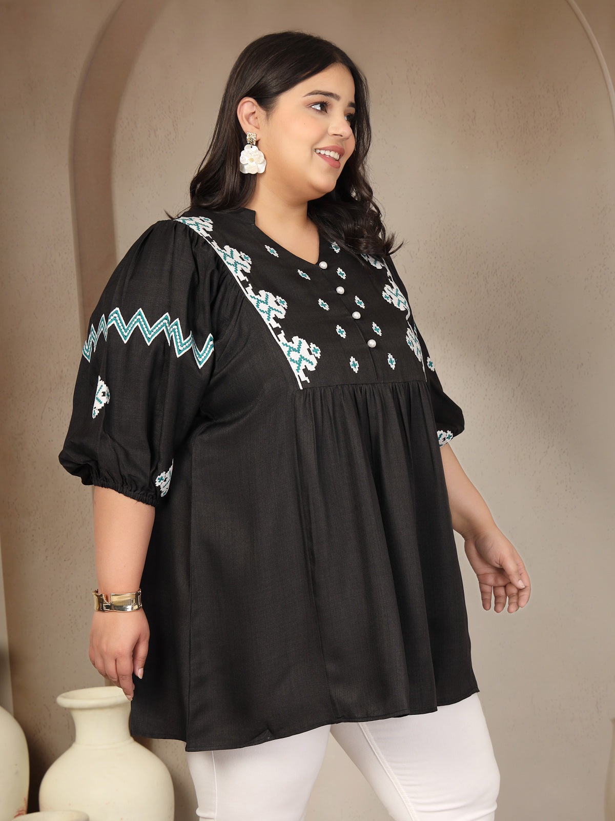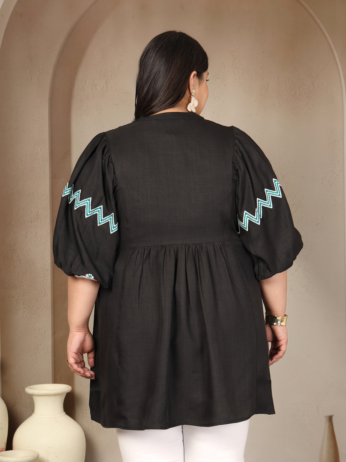 Plus Size Embroidered Puff Sleeve Ethnic Top