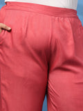 Pink solid trousers, has an elasticated waistband with slip-on closure has 2 pockets