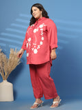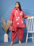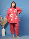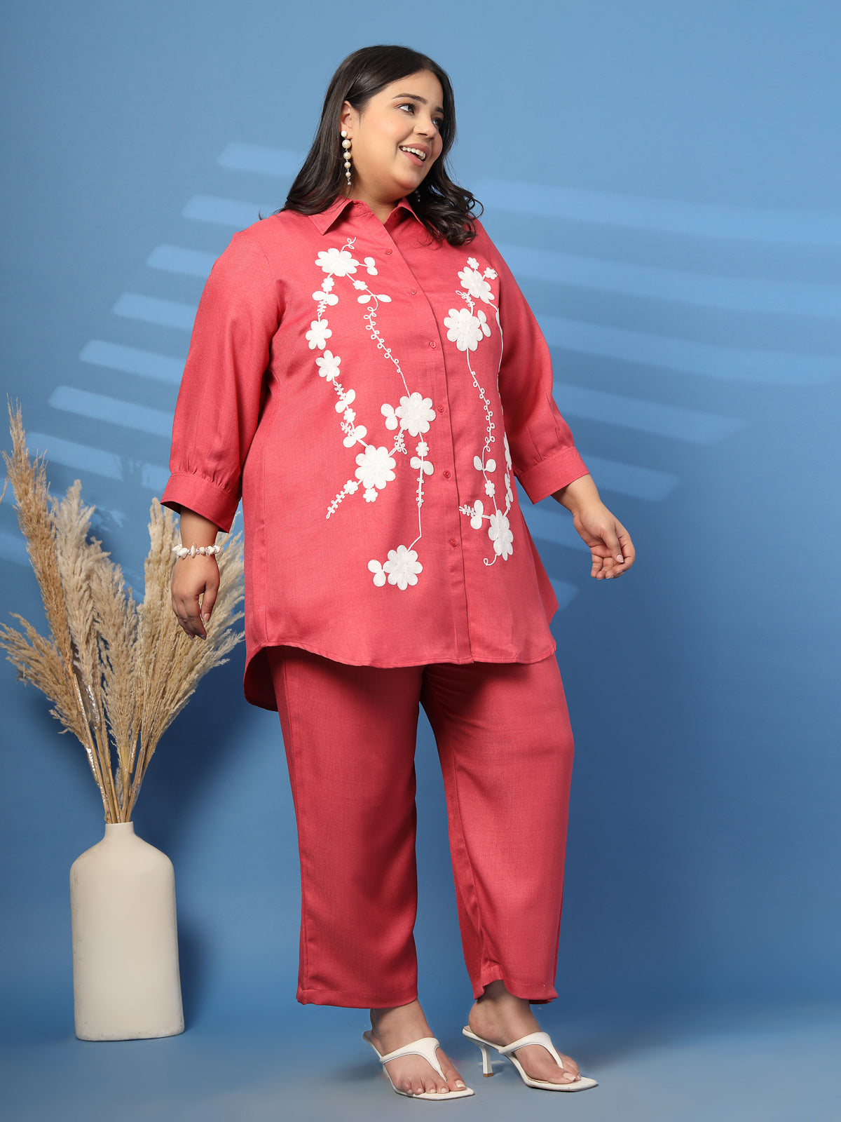 Plus Size Embroidered Spread Collar Shirt & Trouser