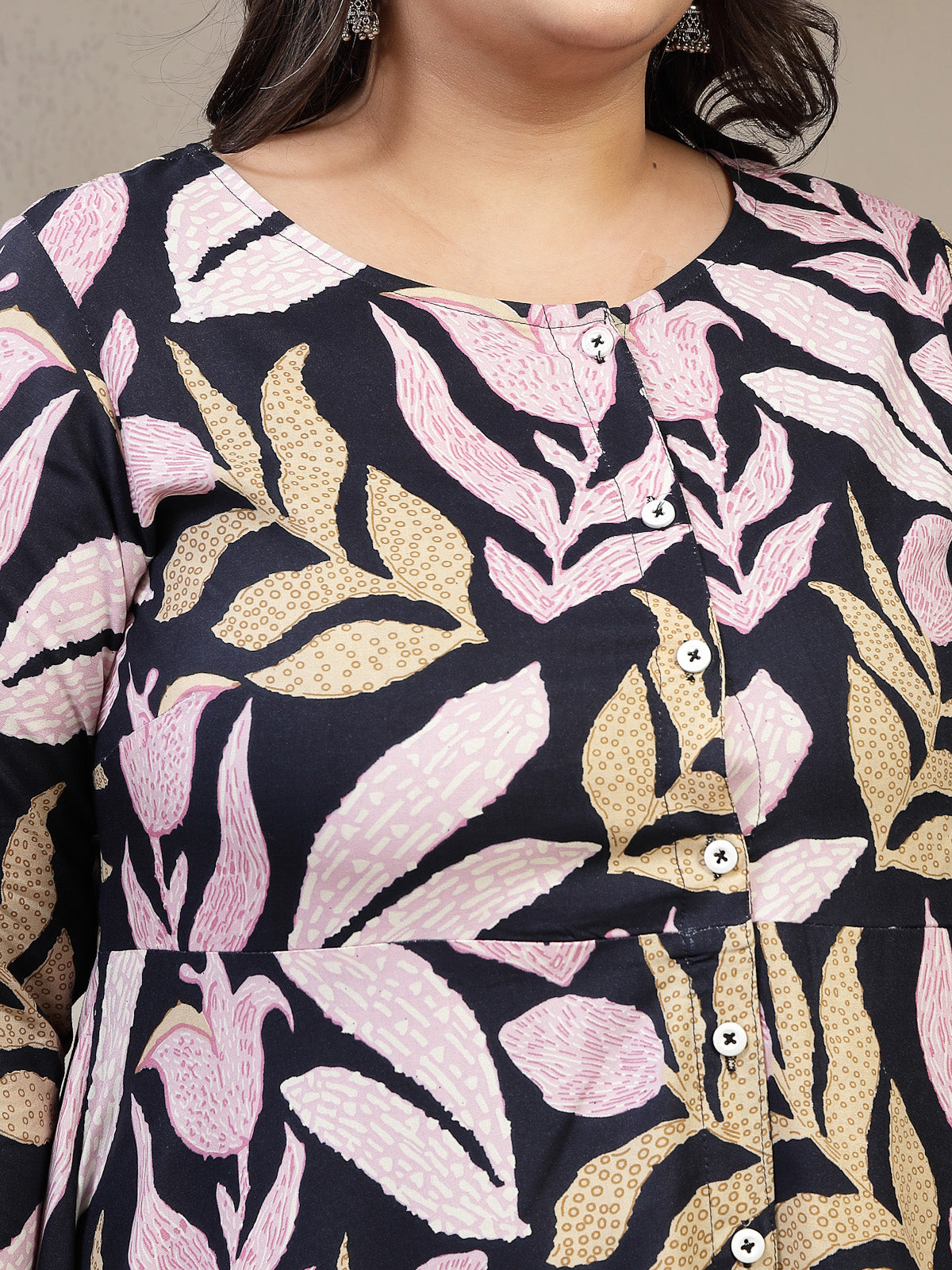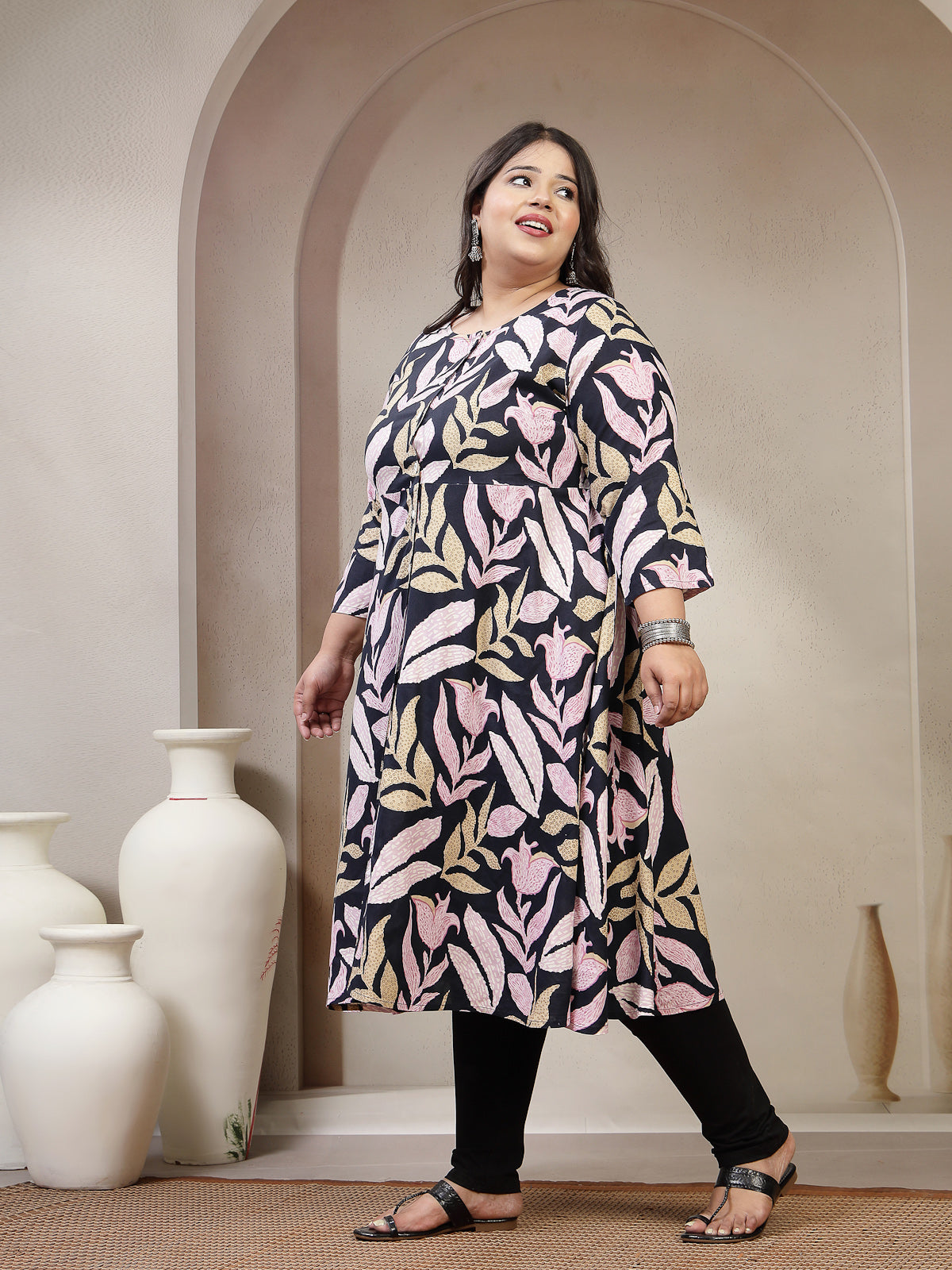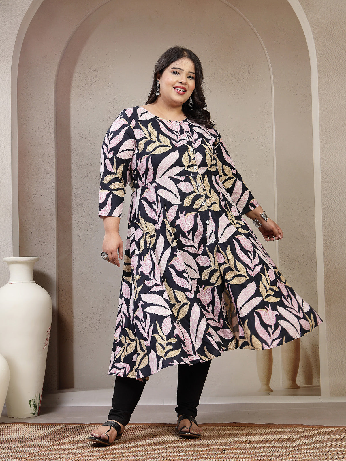 Plus Size Ethnic Motifs Printed Mandarin Collar A-Line Regular Kurta