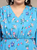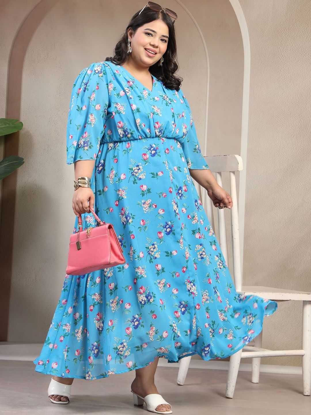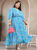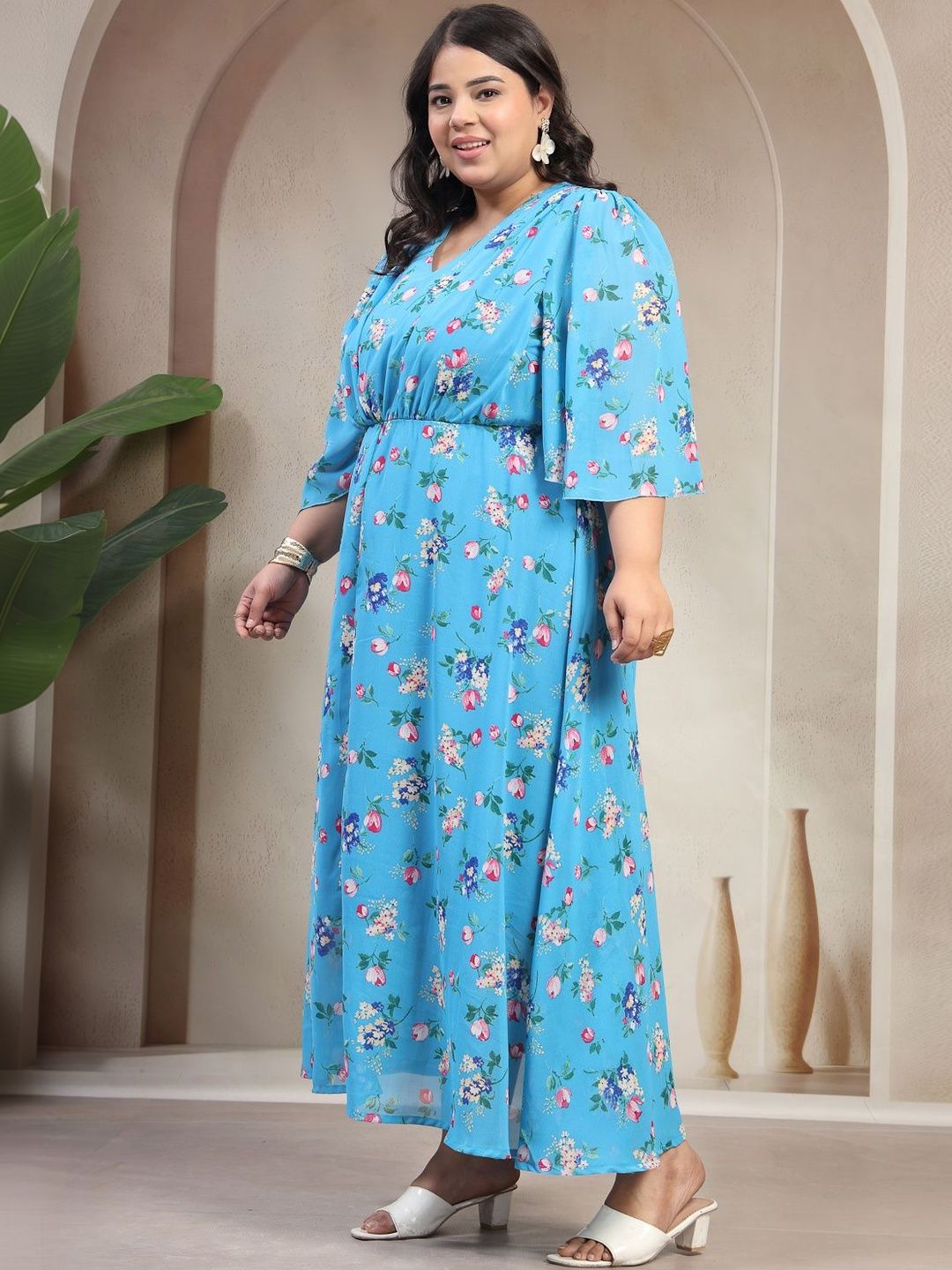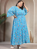 Plus Size Floral Print Flared Sleeve Fit & Flare Maxi Dress