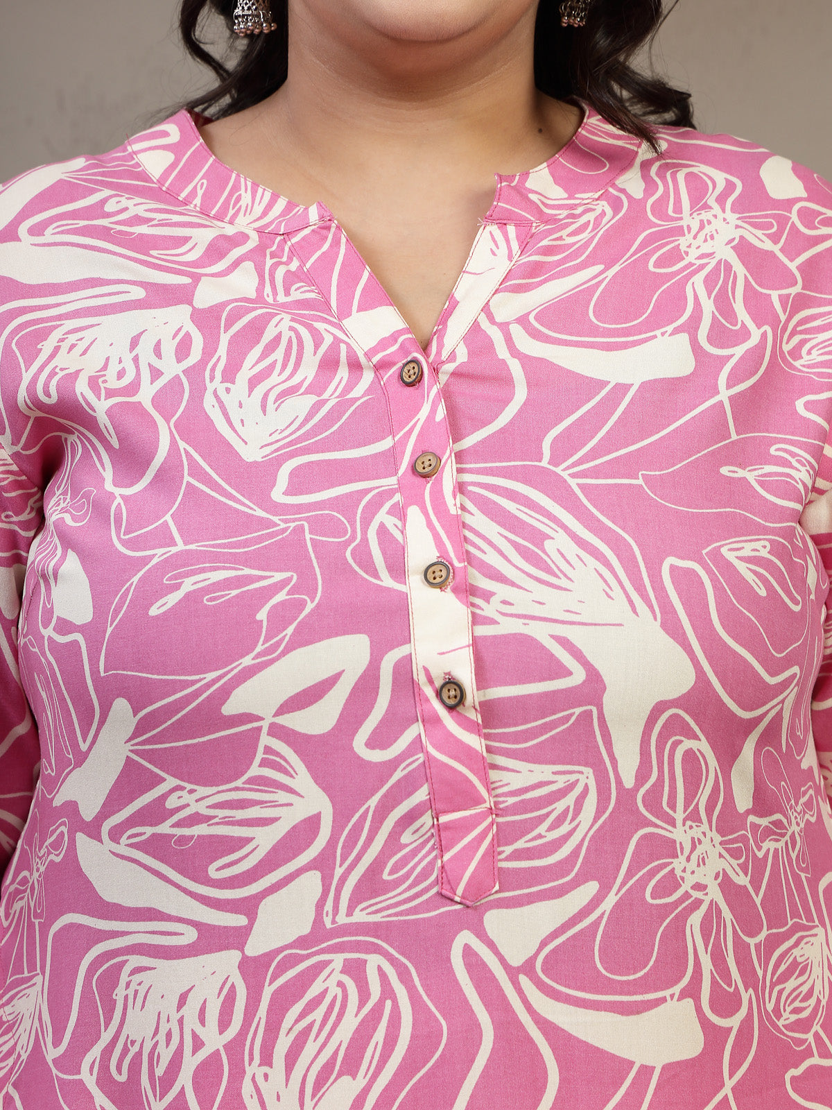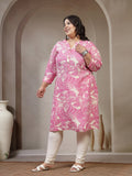 Plus Size Floral Printed Mandarin Collar A-Line Curved Regular Kurta