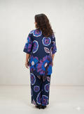 Navy blue, blue and Pink floral patch work tunic, has a v-neck and three quarter sleeves