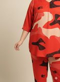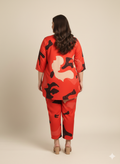 Orange, Beige and Black floral patch work tunic, has a v-neck and three quarter sleeves