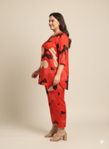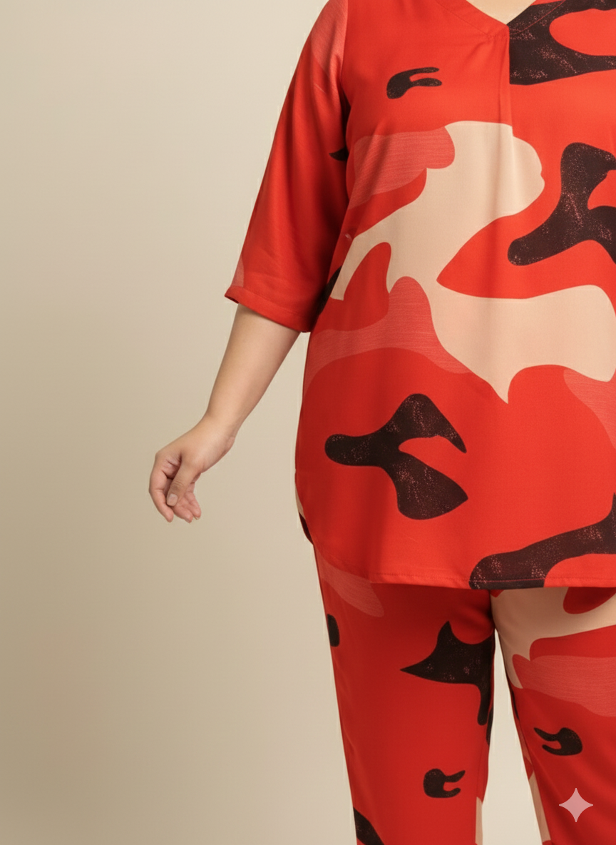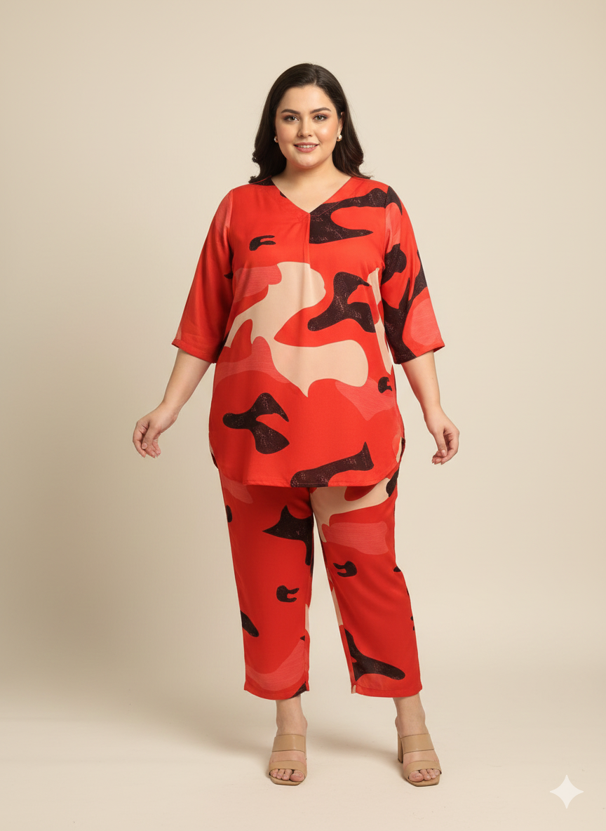 Plus Size Floral Printed V-Neck Three-Quarter Sleeves Tunic With Trouser