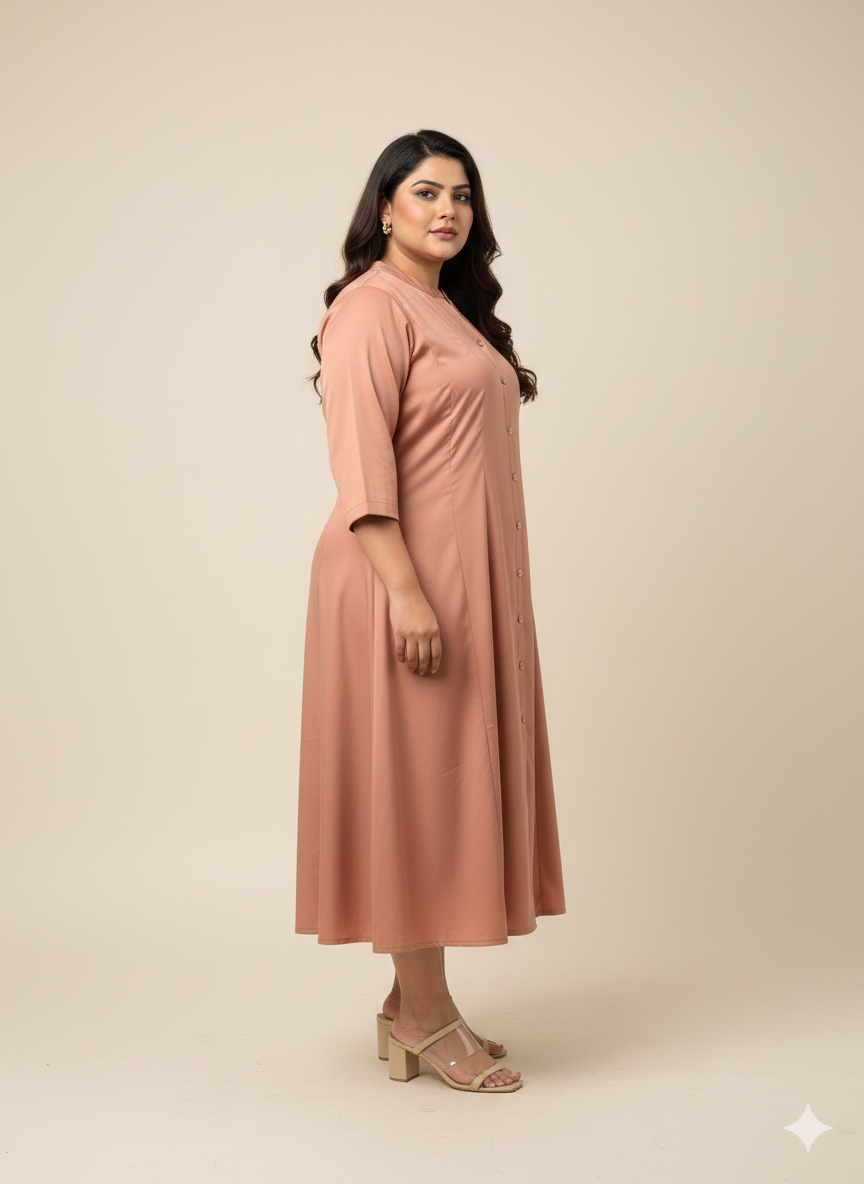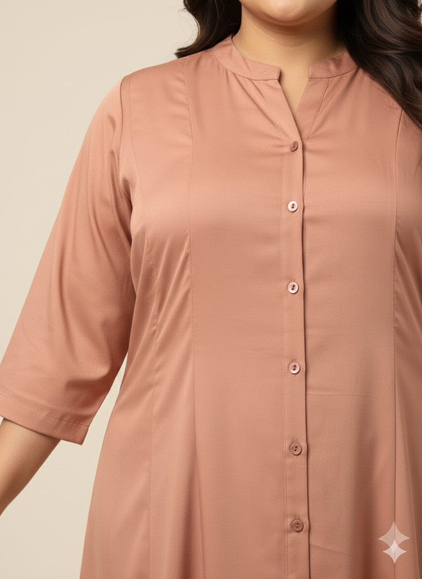 - Peach Solid Shirt dress