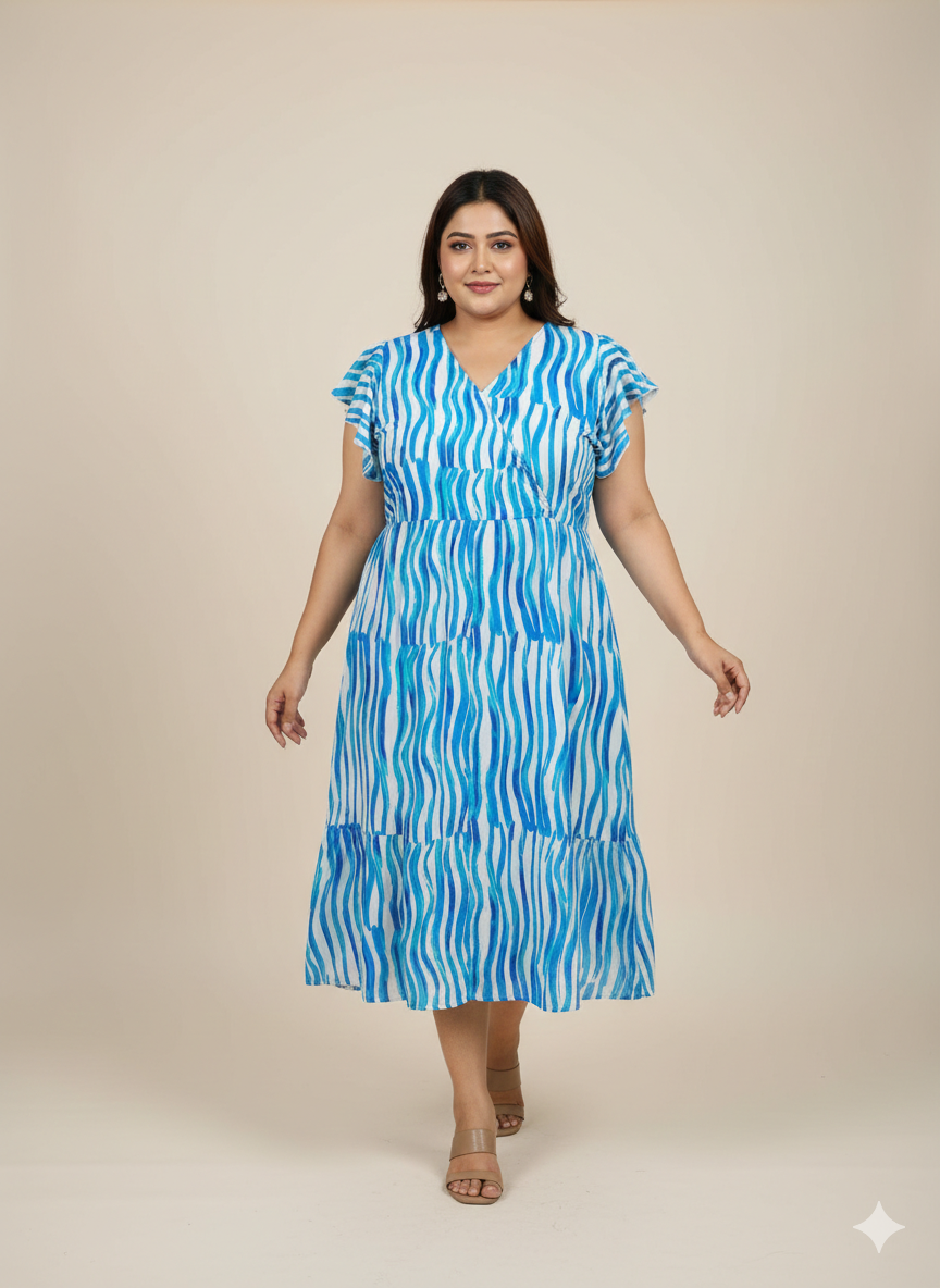 Plus Size Flutter Sleeve Midi Dress