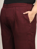 Maroon soild trousers, has an elasticated waistband with slip-on closure with two pockets