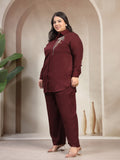 Plus Size Hand Embellishment Shirt Collar Long sleeves Trousers Co-Ords