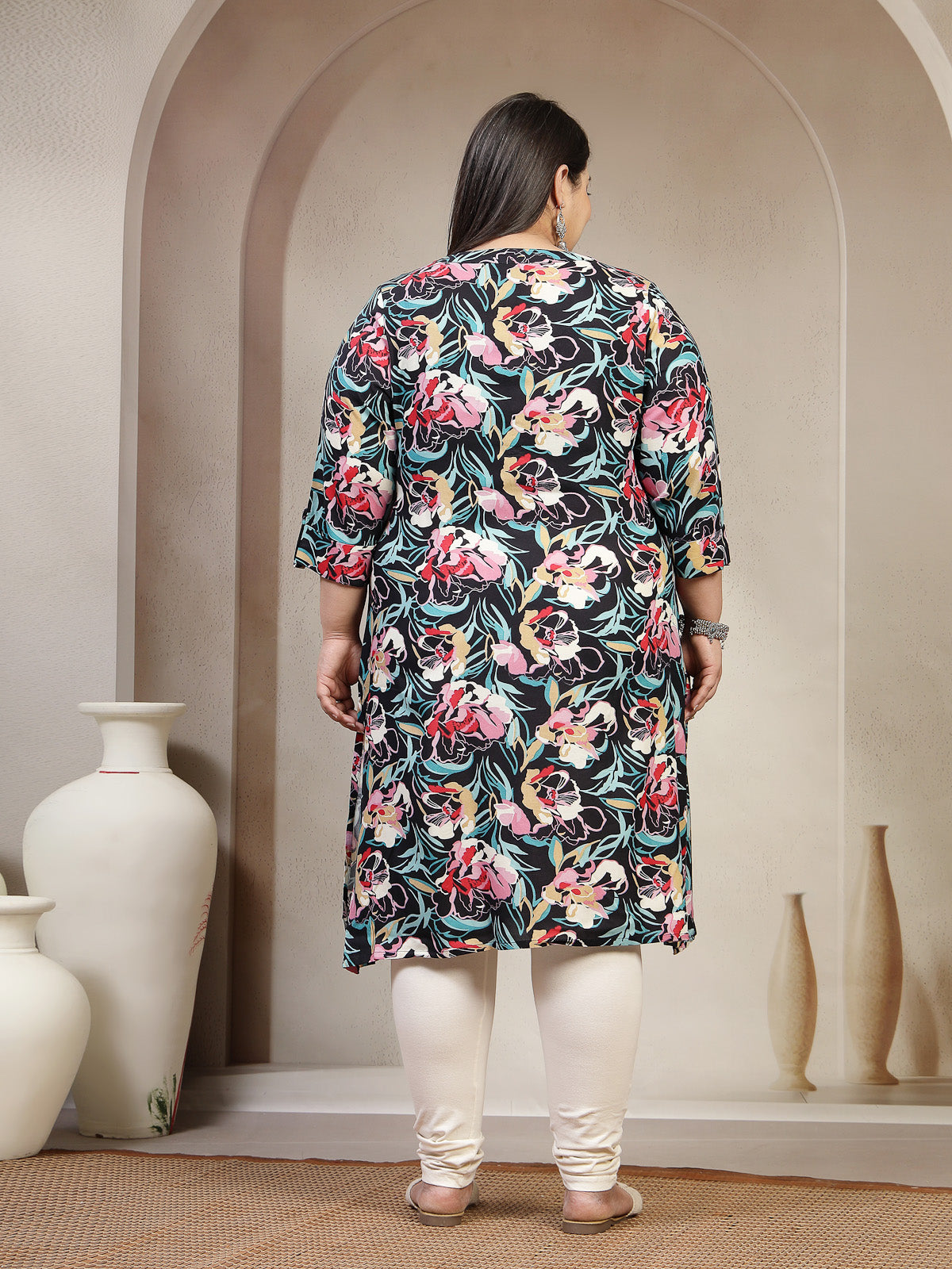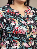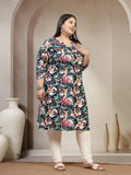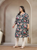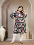 Plus Size Mandarin Collar Abstract Printed Kurta