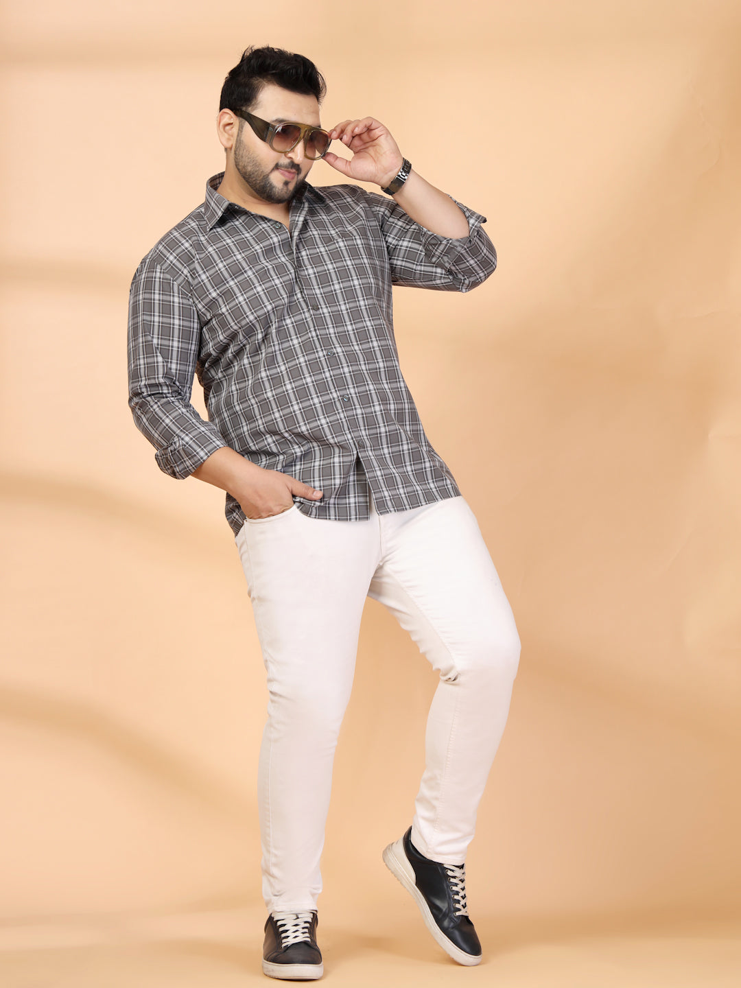 Plus Size Men Classic Checked Casual Shirt