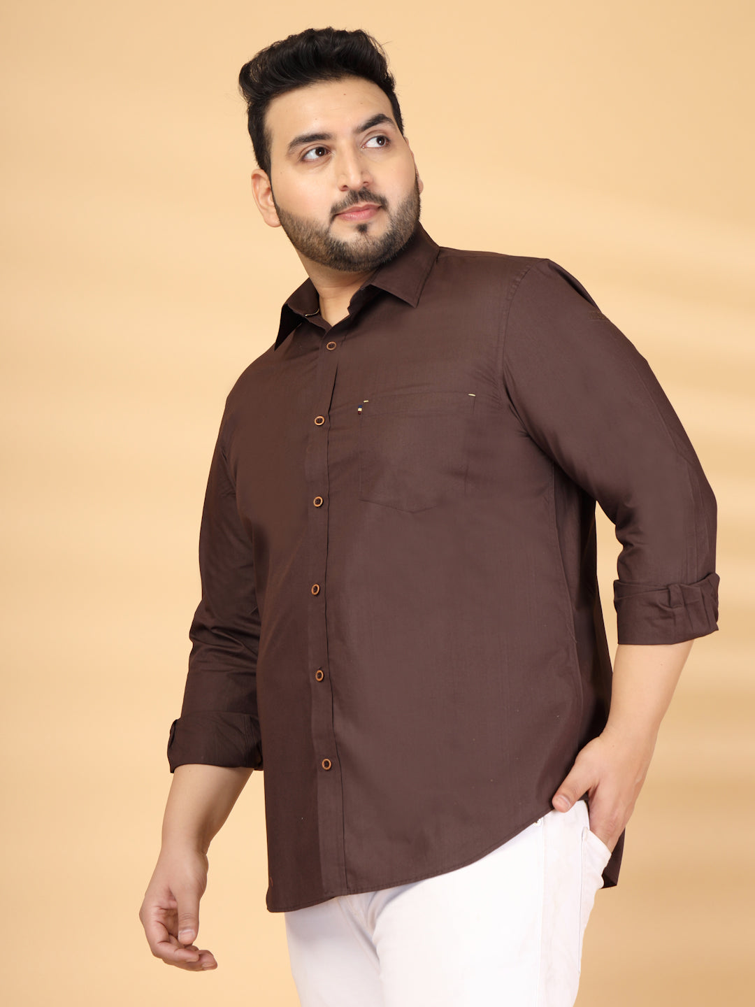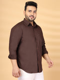 Plus Size Men Classic Fit Solid Spread Collar Cotton Casual Shirt