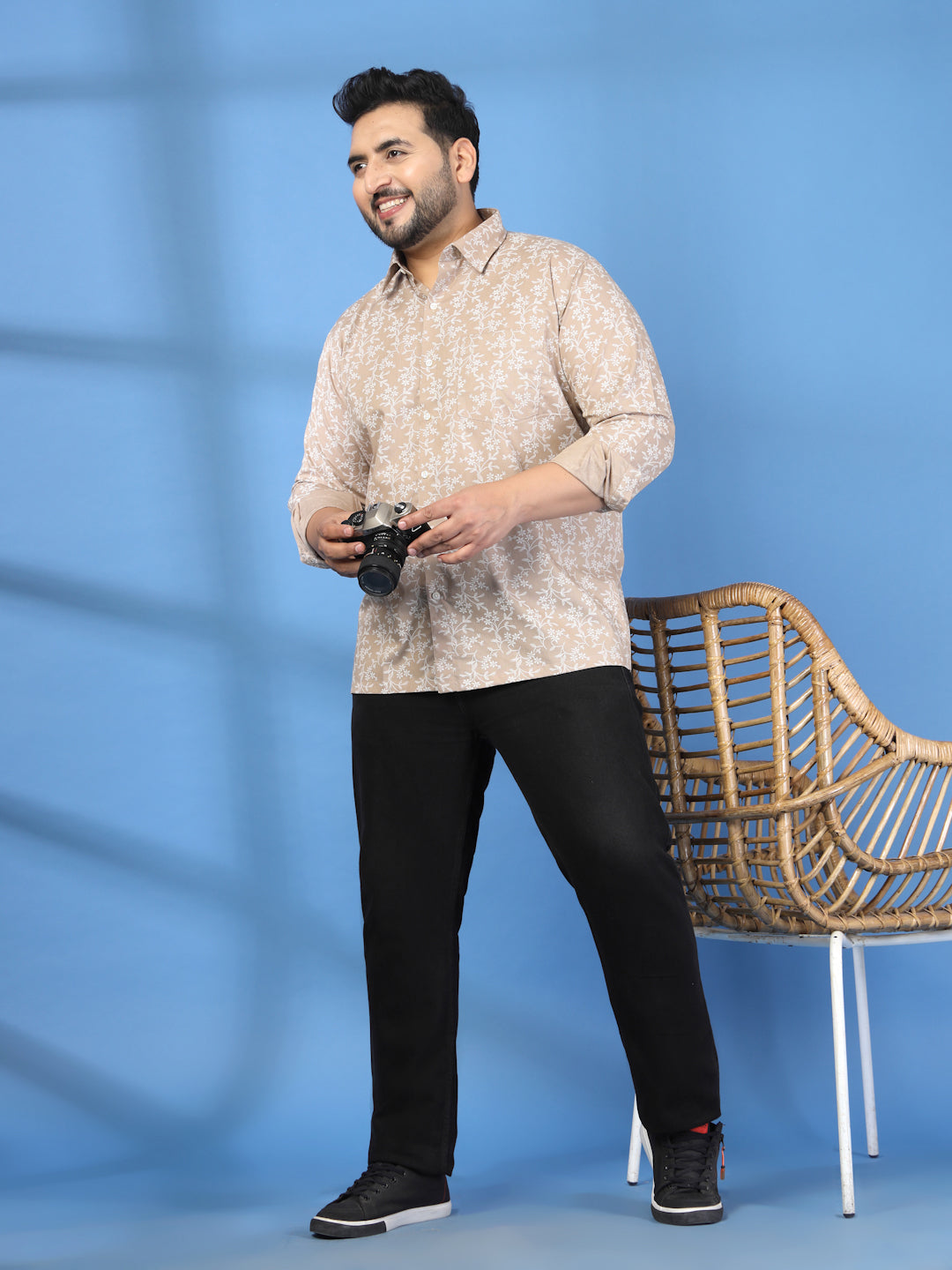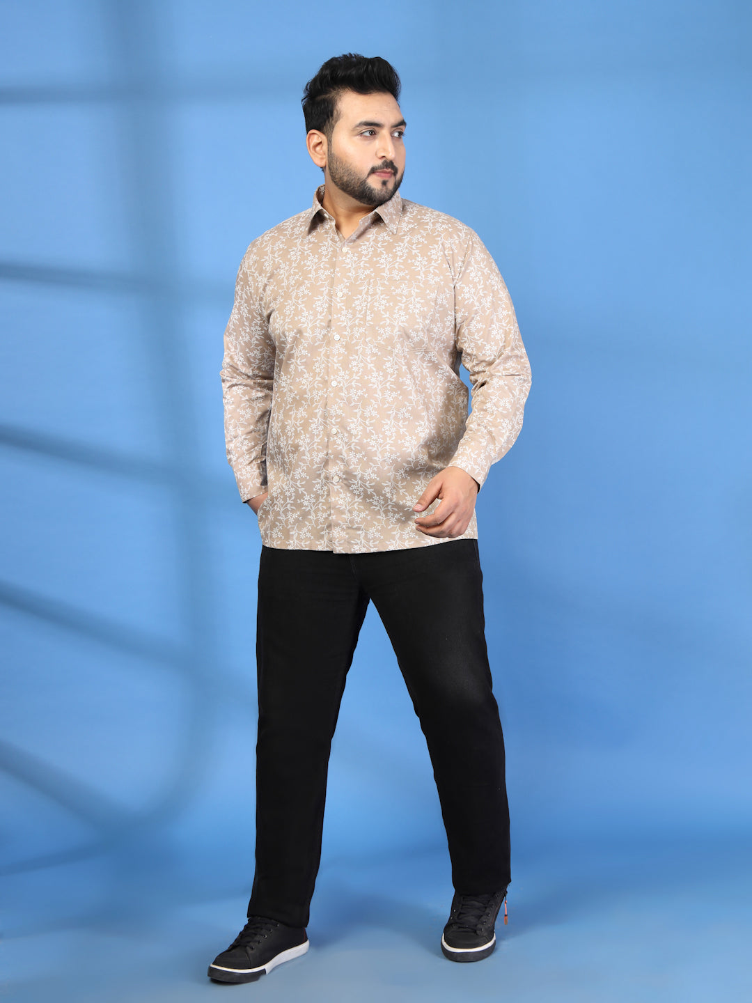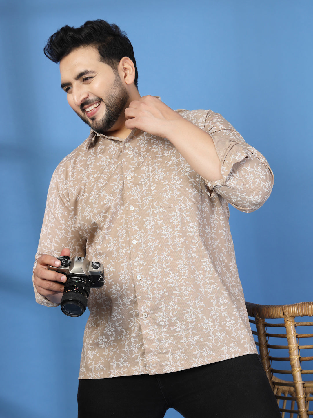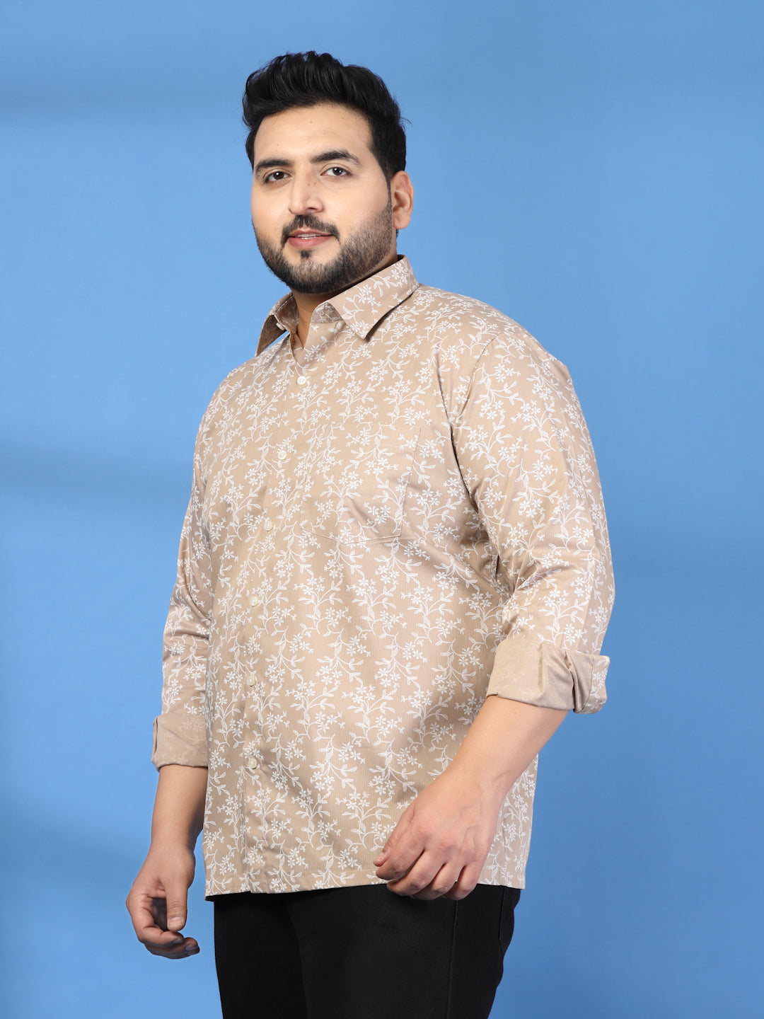 Beige floral printed opaque Casual shirt ,has a spread collar, button placket, 1 patch pocket, long regular sleeves, curved hem