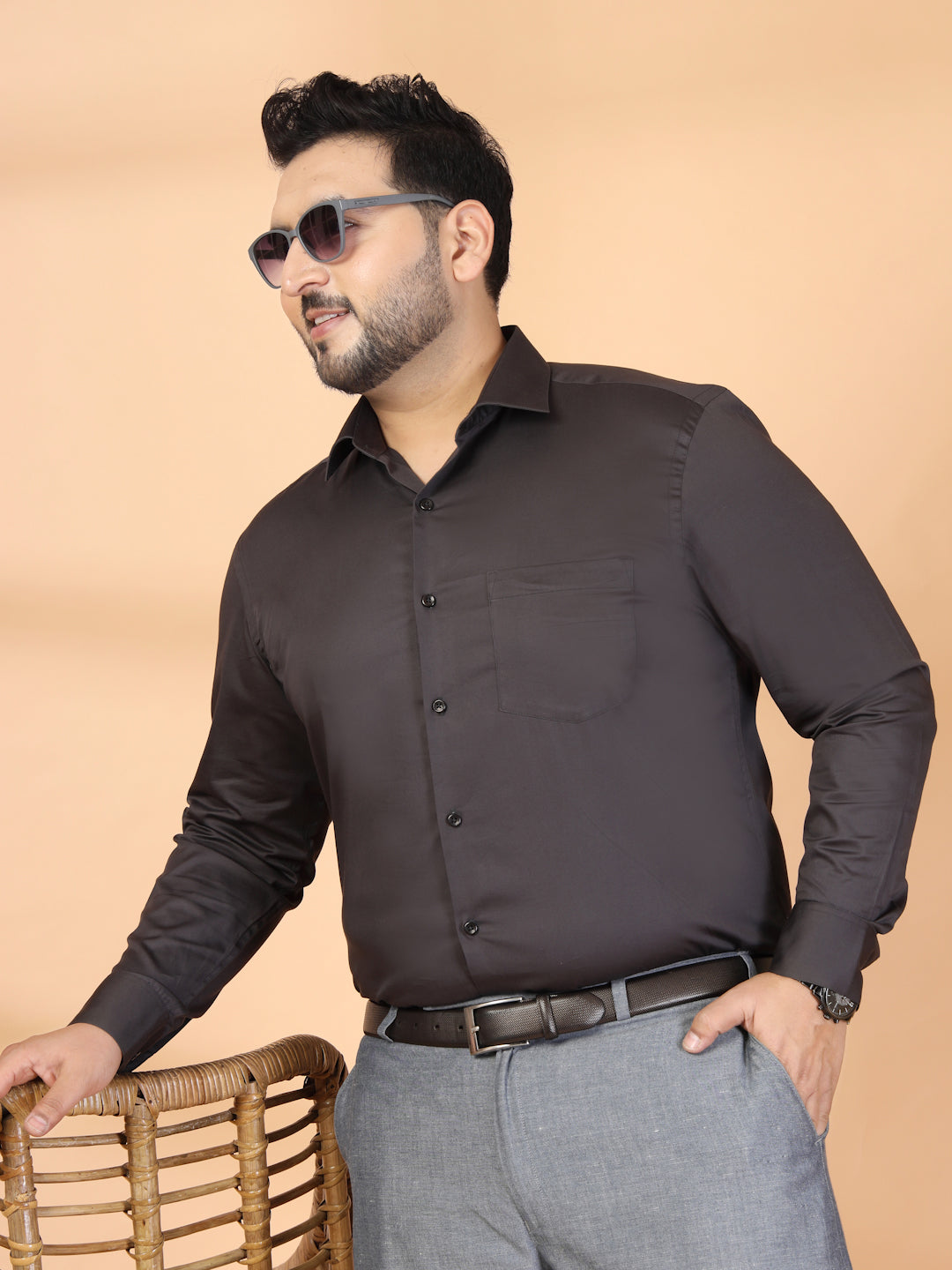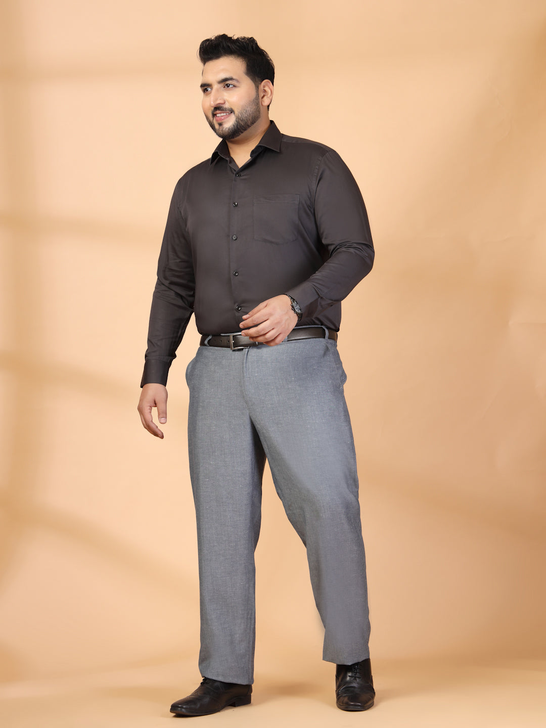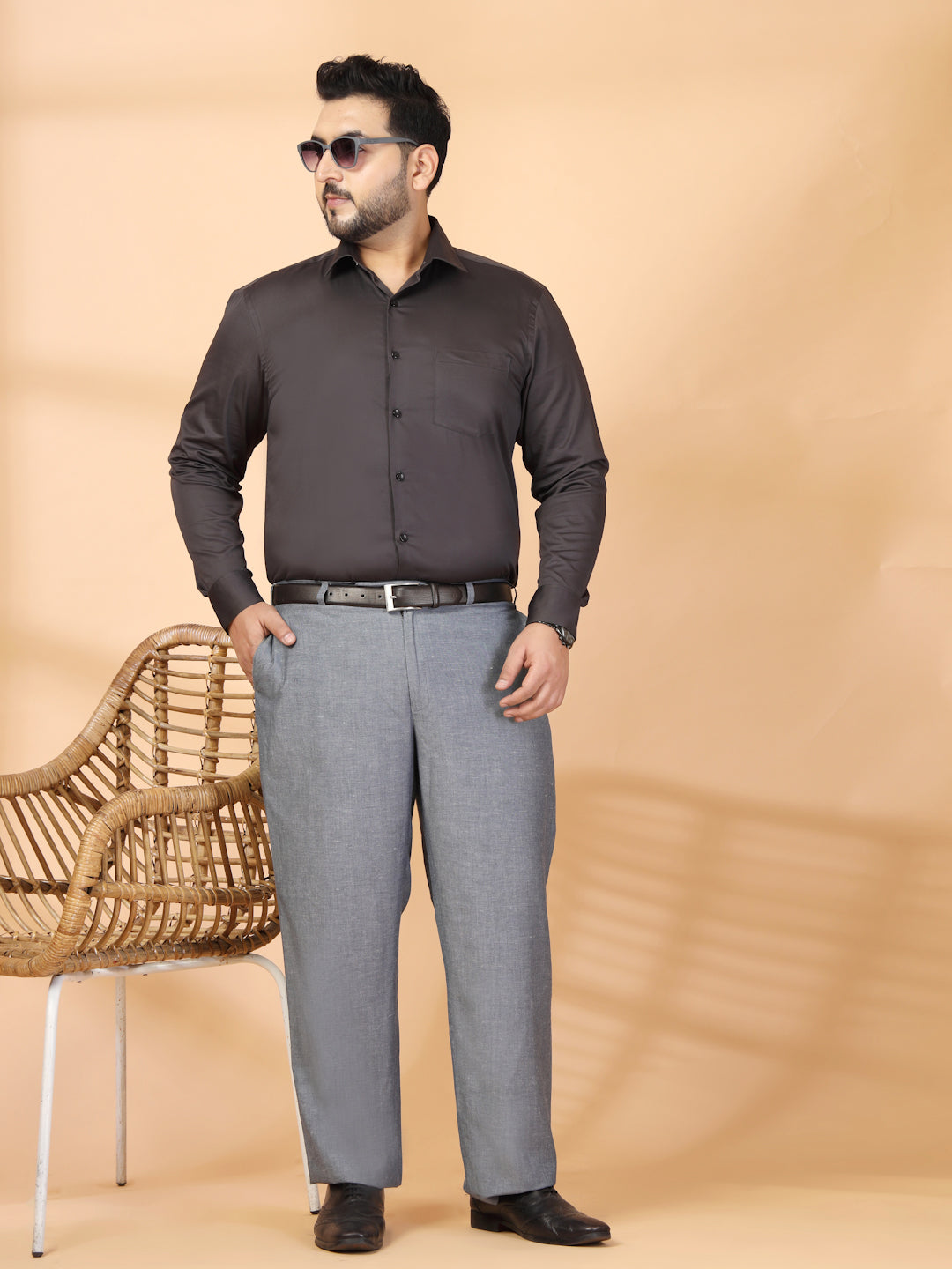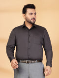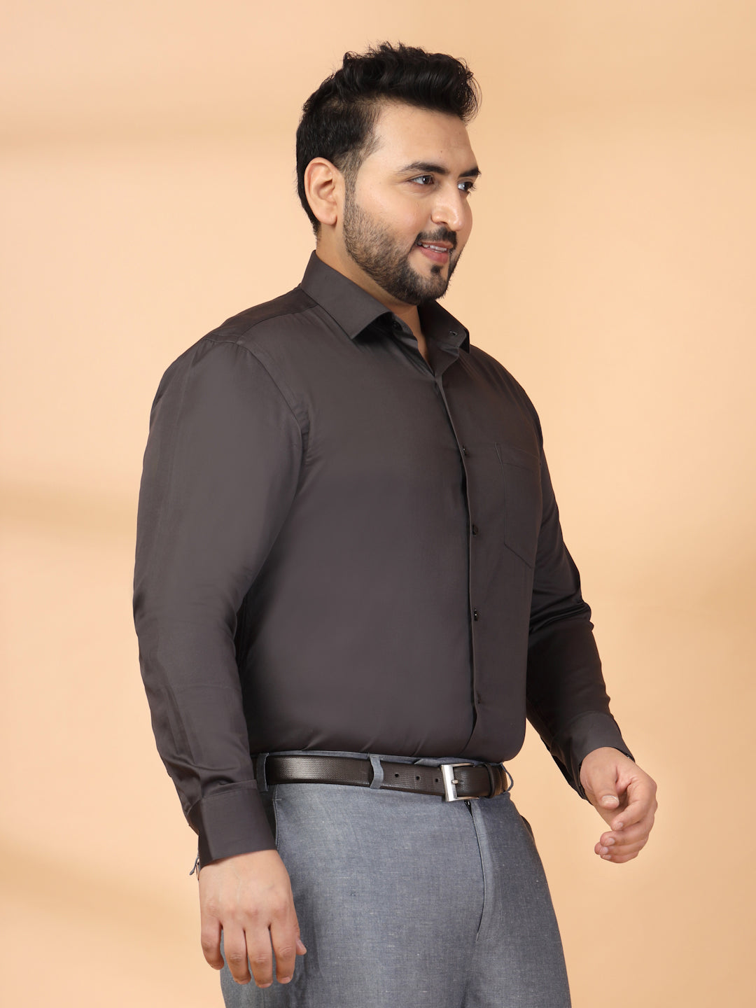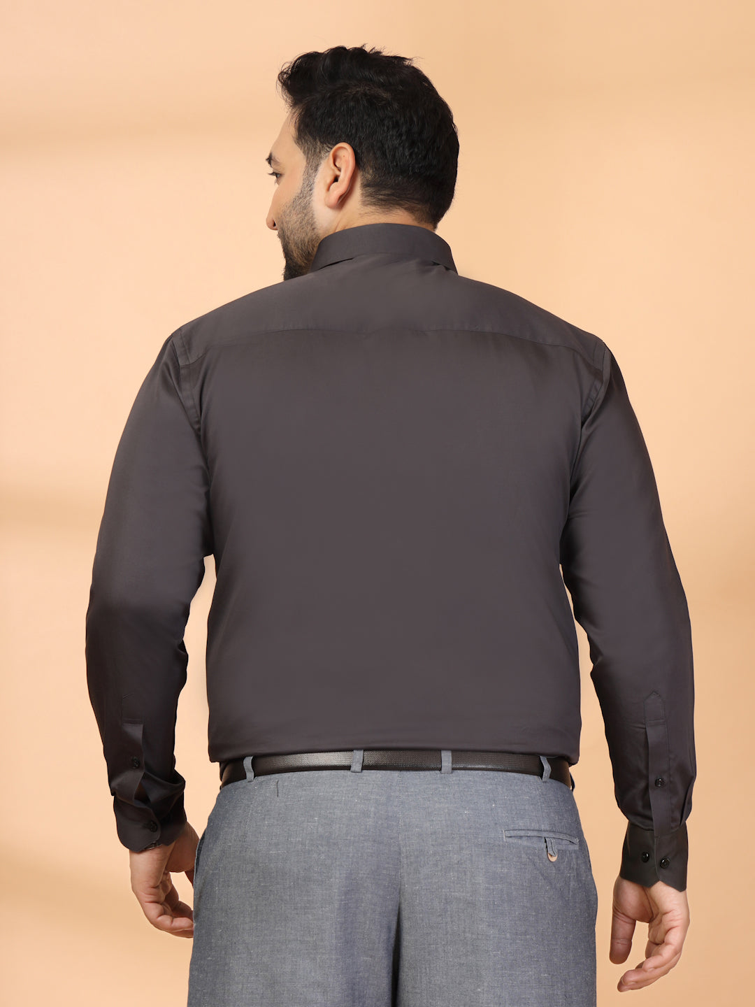 Charcoal solid opaque Formal shirt ,has a spread collar, button placket, 1 patch pocket, long regular sleeves, curved hem