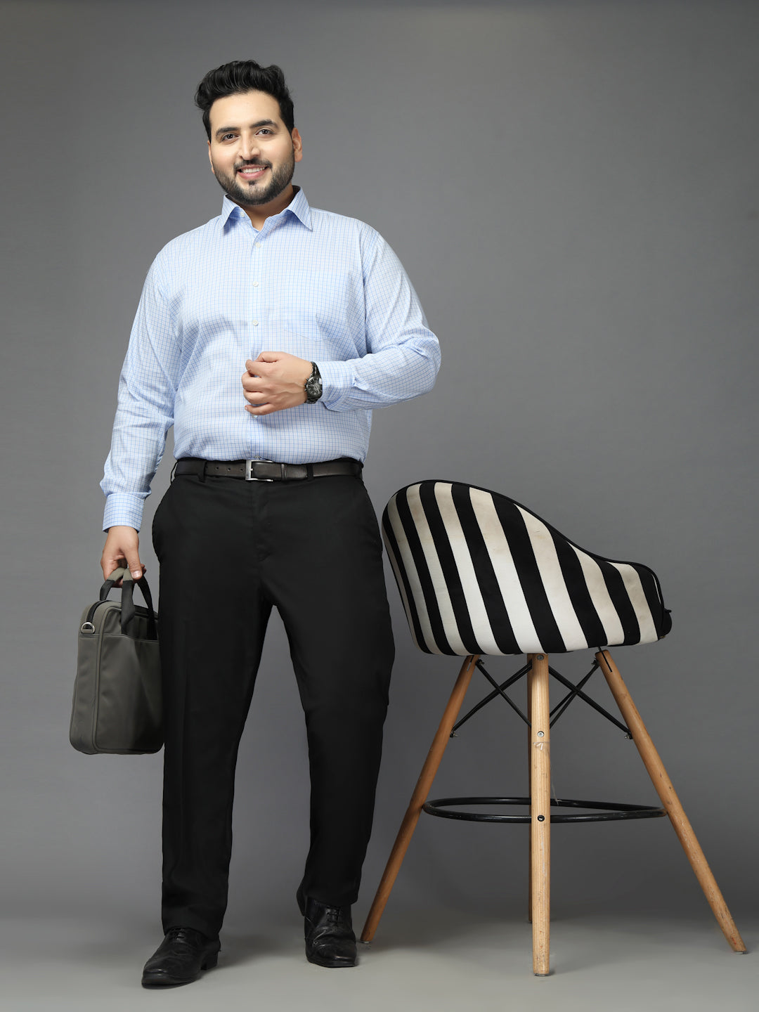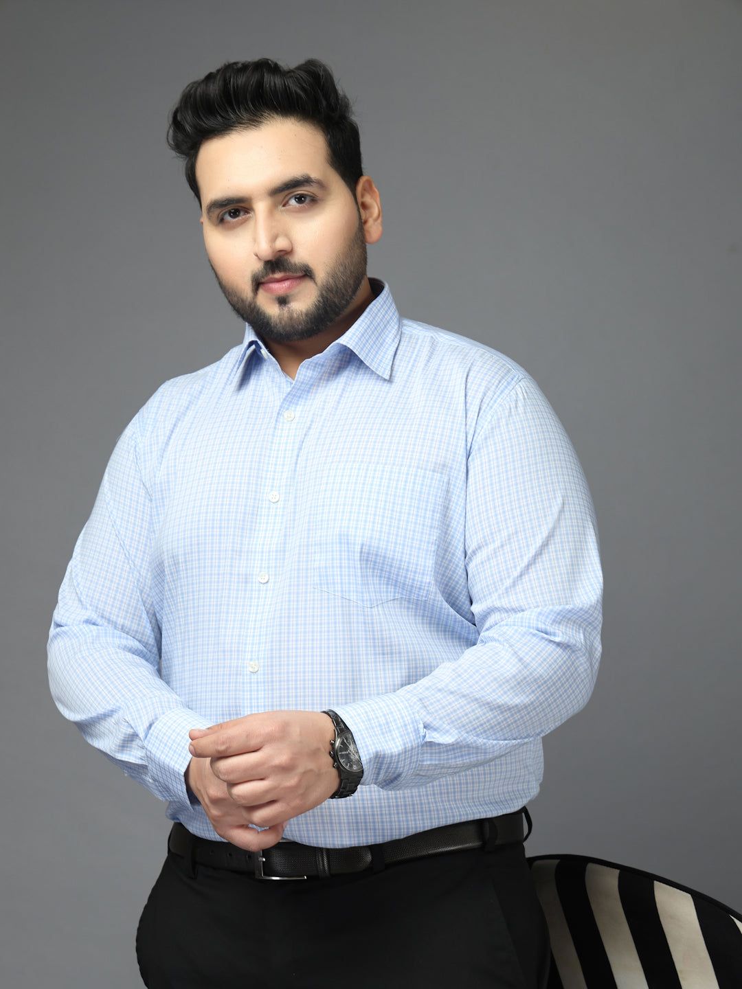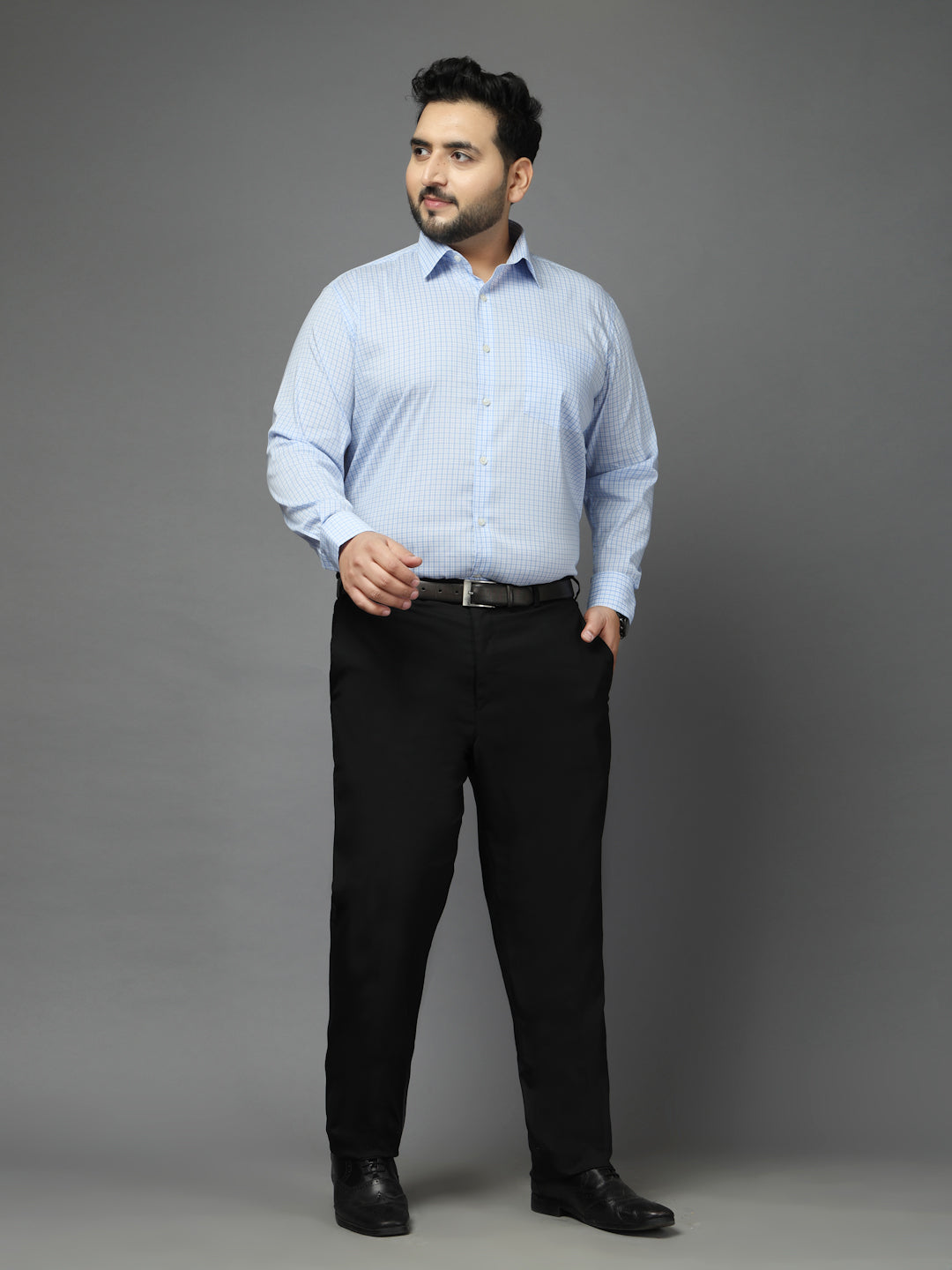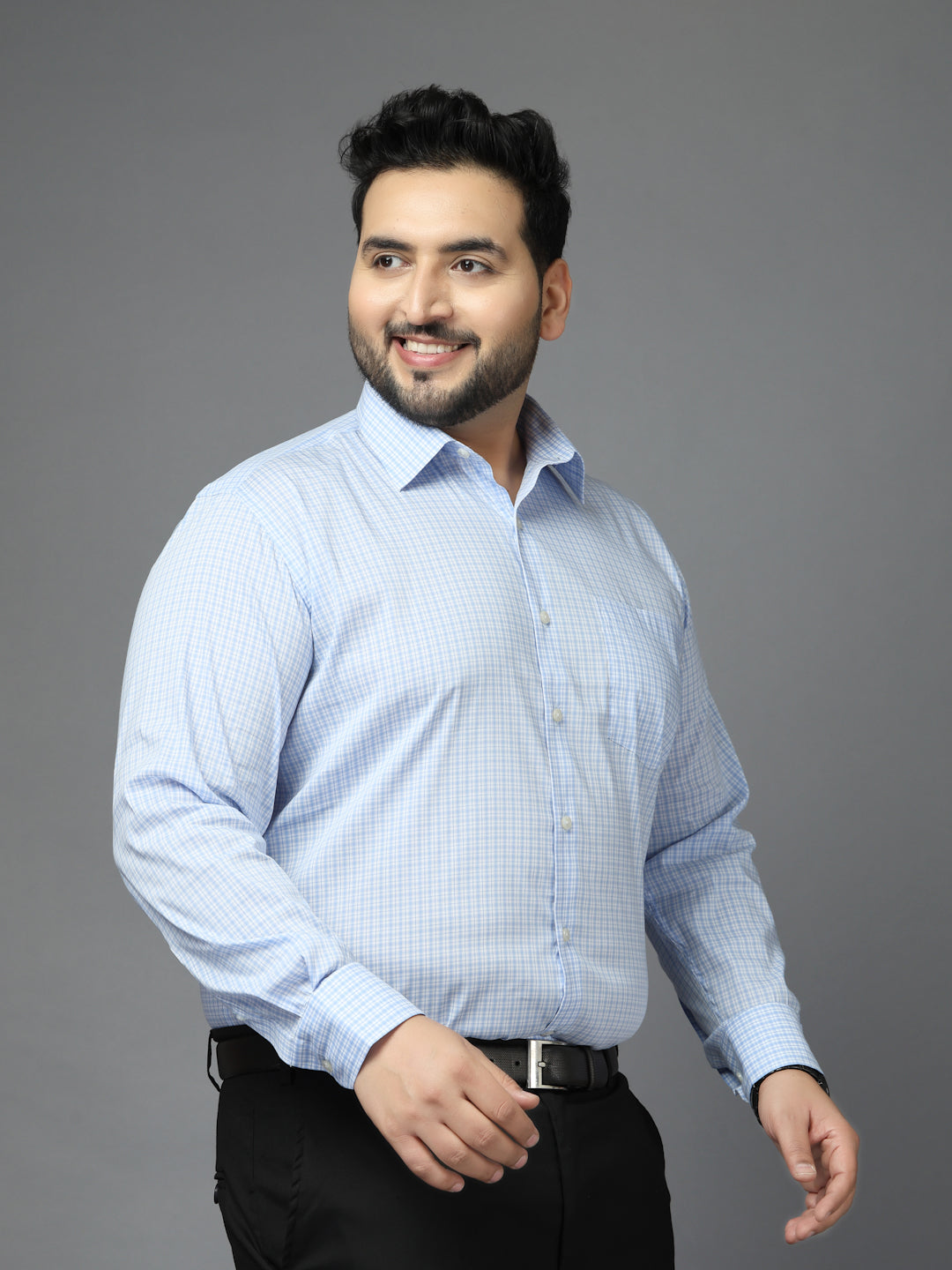 Plus Size Men Classic Micro Checks Checked Formal Shirt