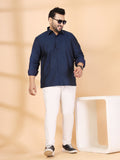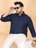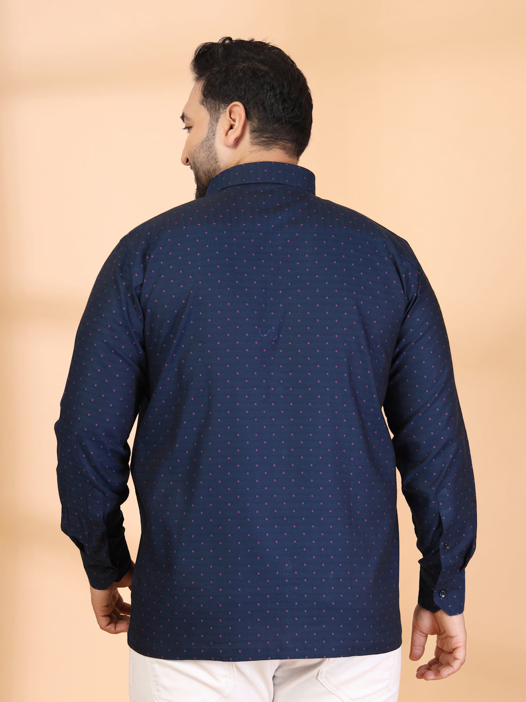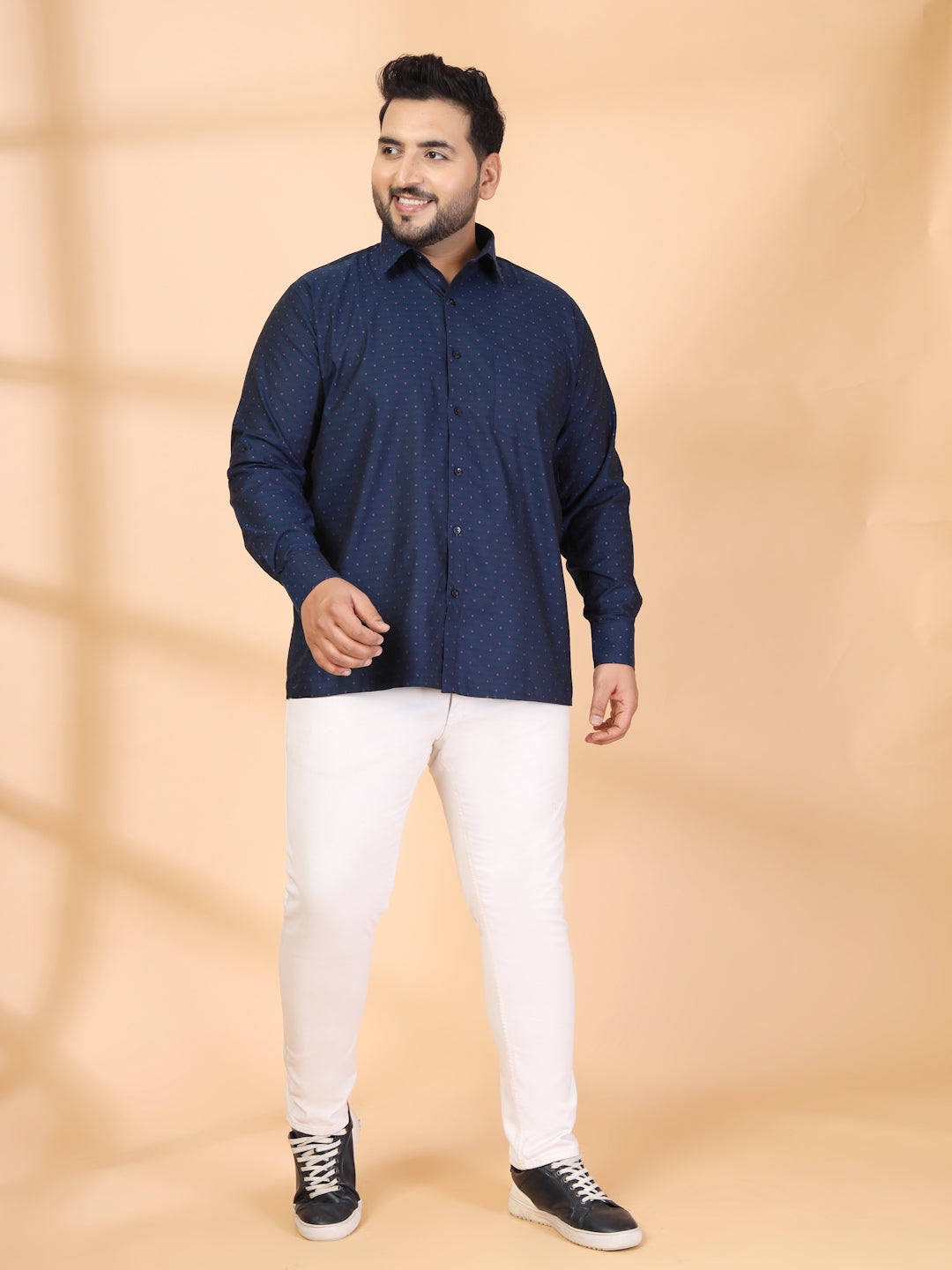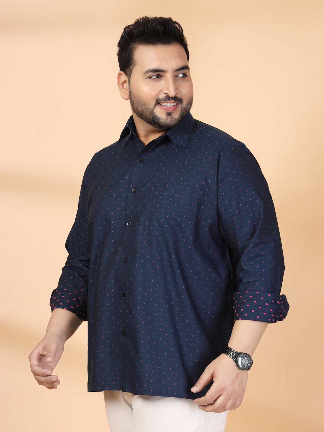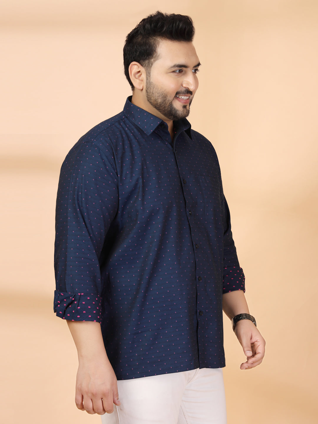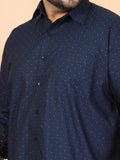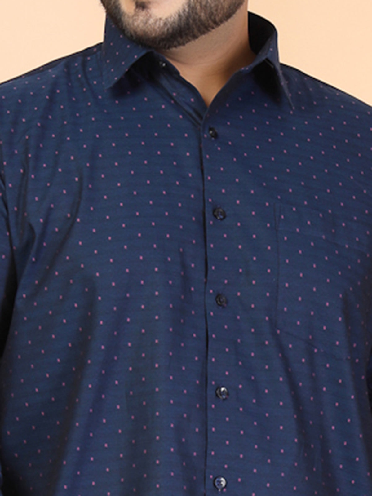 Navy blue micro ditsy printed opaque Casual shirt ,has a spread collar, button placket, 1 patch pocket, long regular sleeves, curved hem