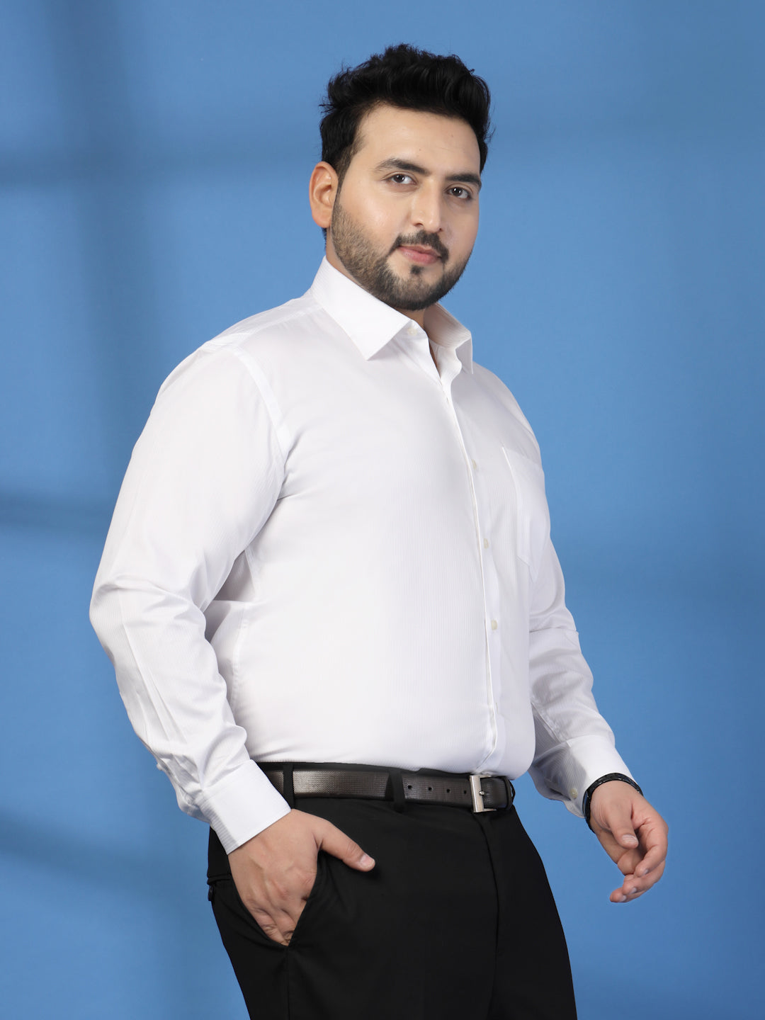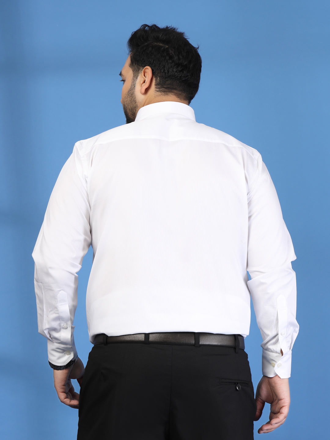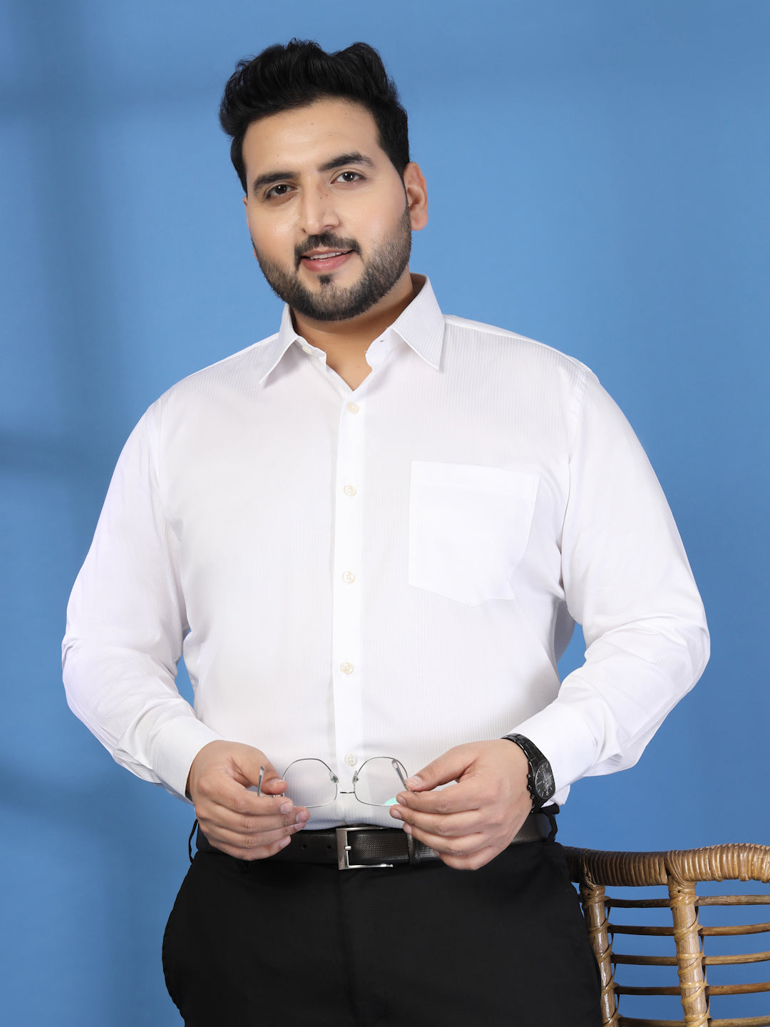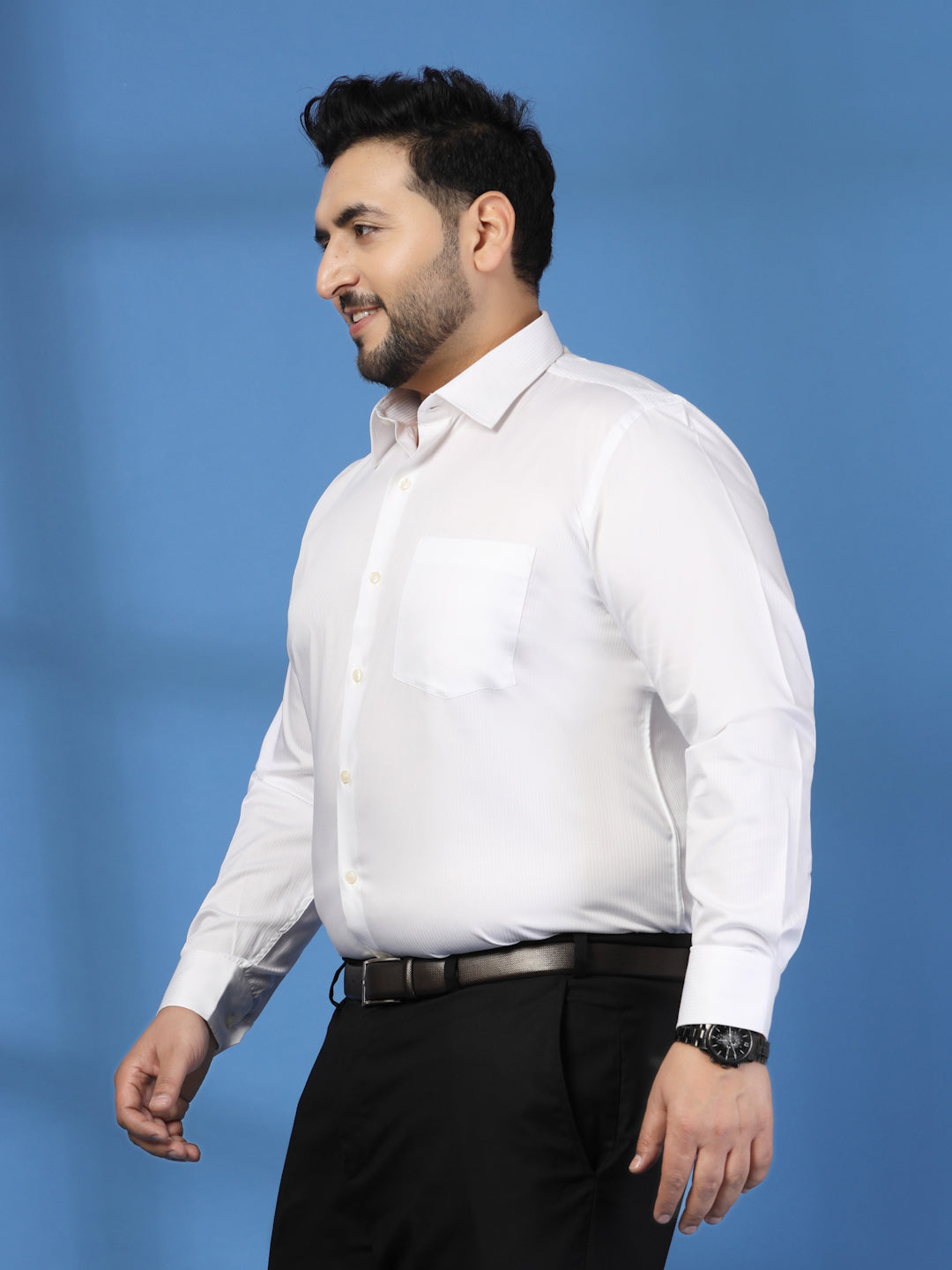 White solid opaque Formal shirt And Horizontal Stripe ,has a spread collar, button placket, 1 patch pocket, long regular sleeves, curved hem