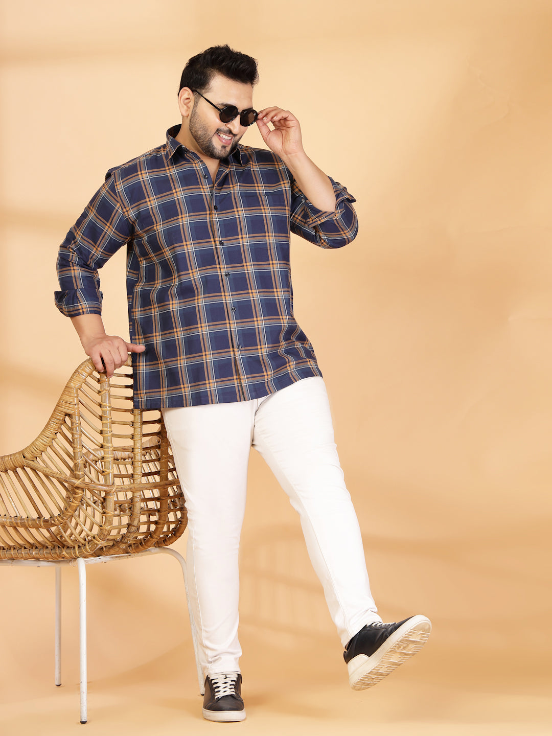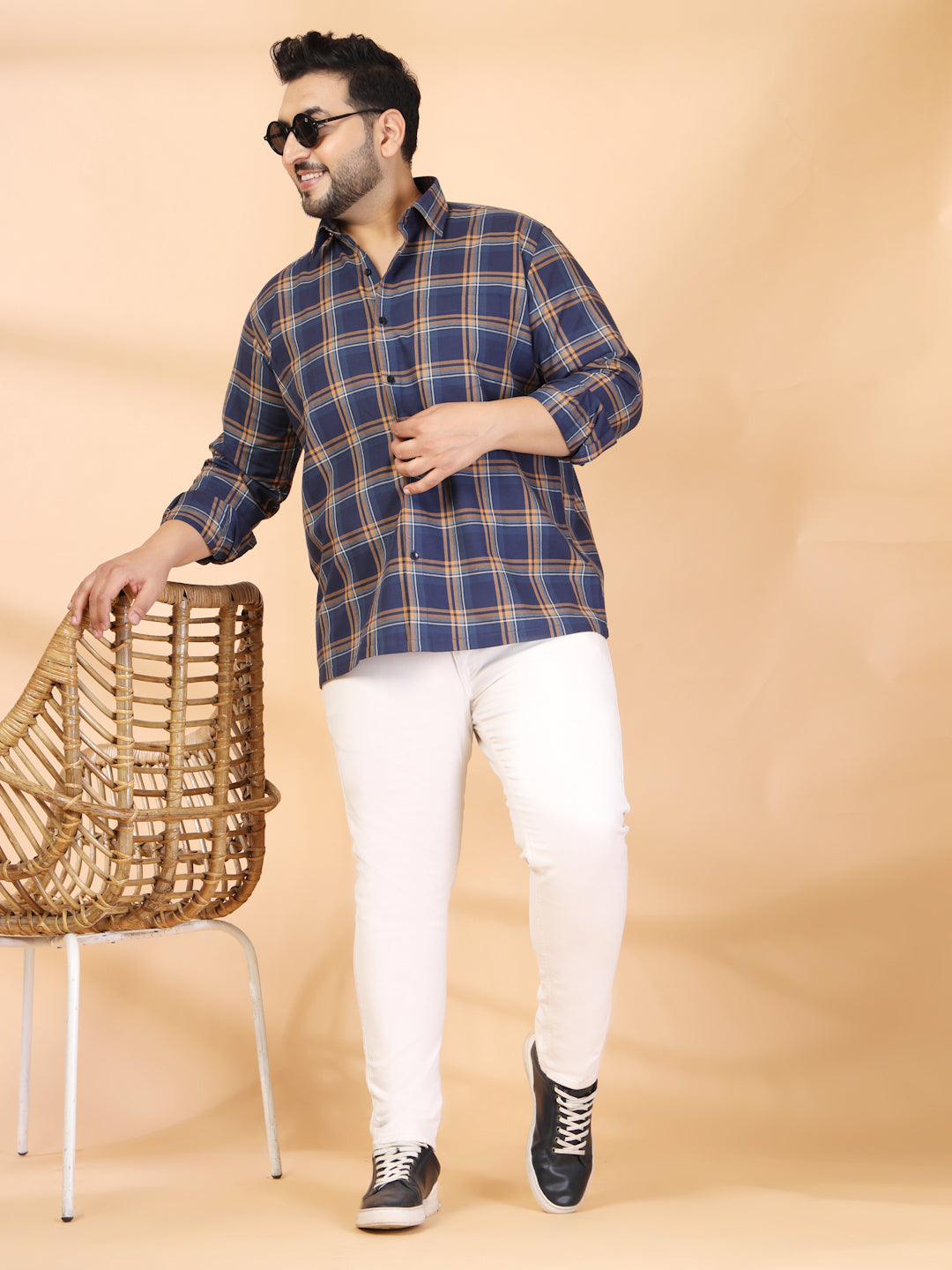 Plus Size Men Classic Tartan Checks Checked Casual Shirt
